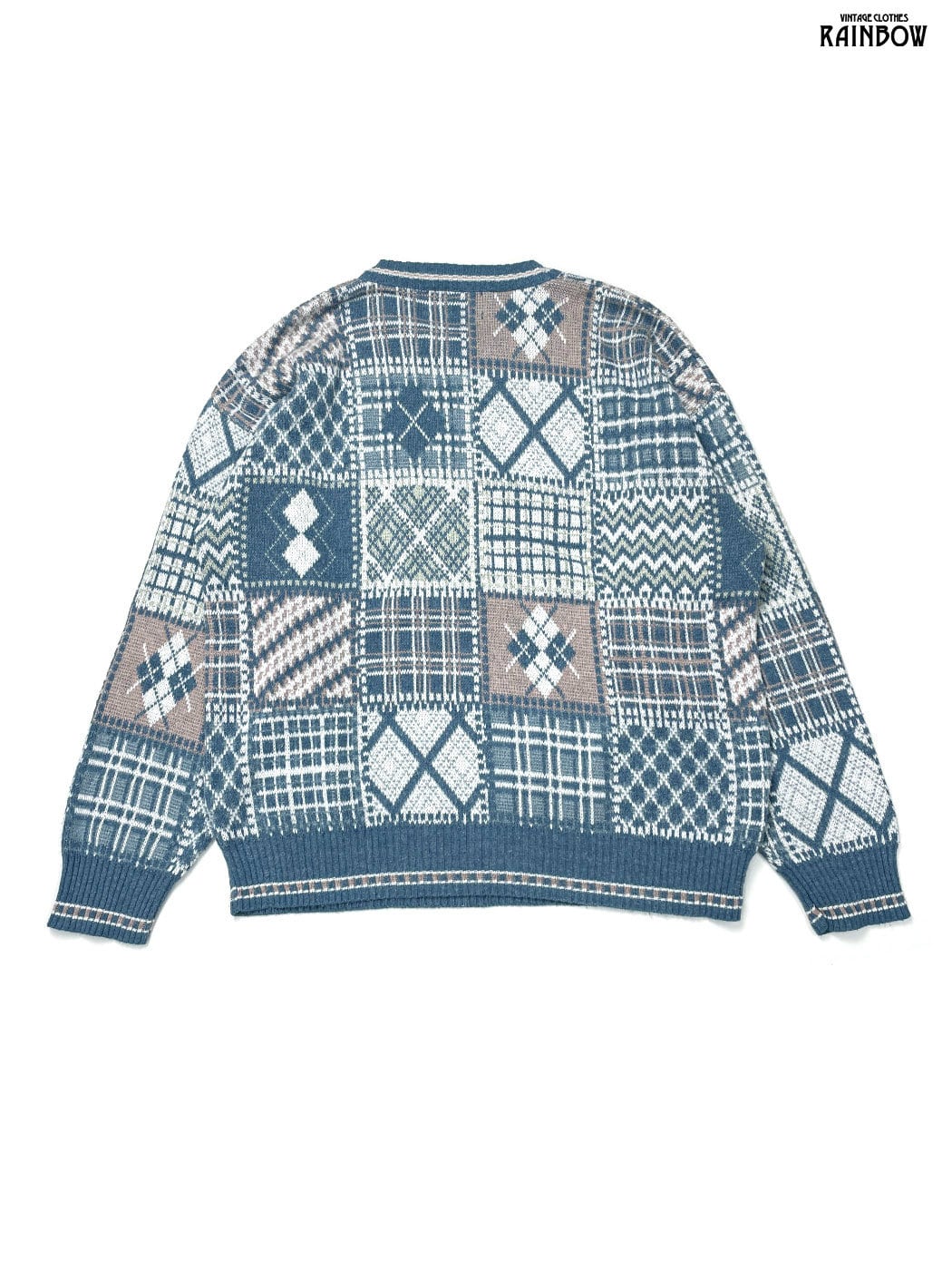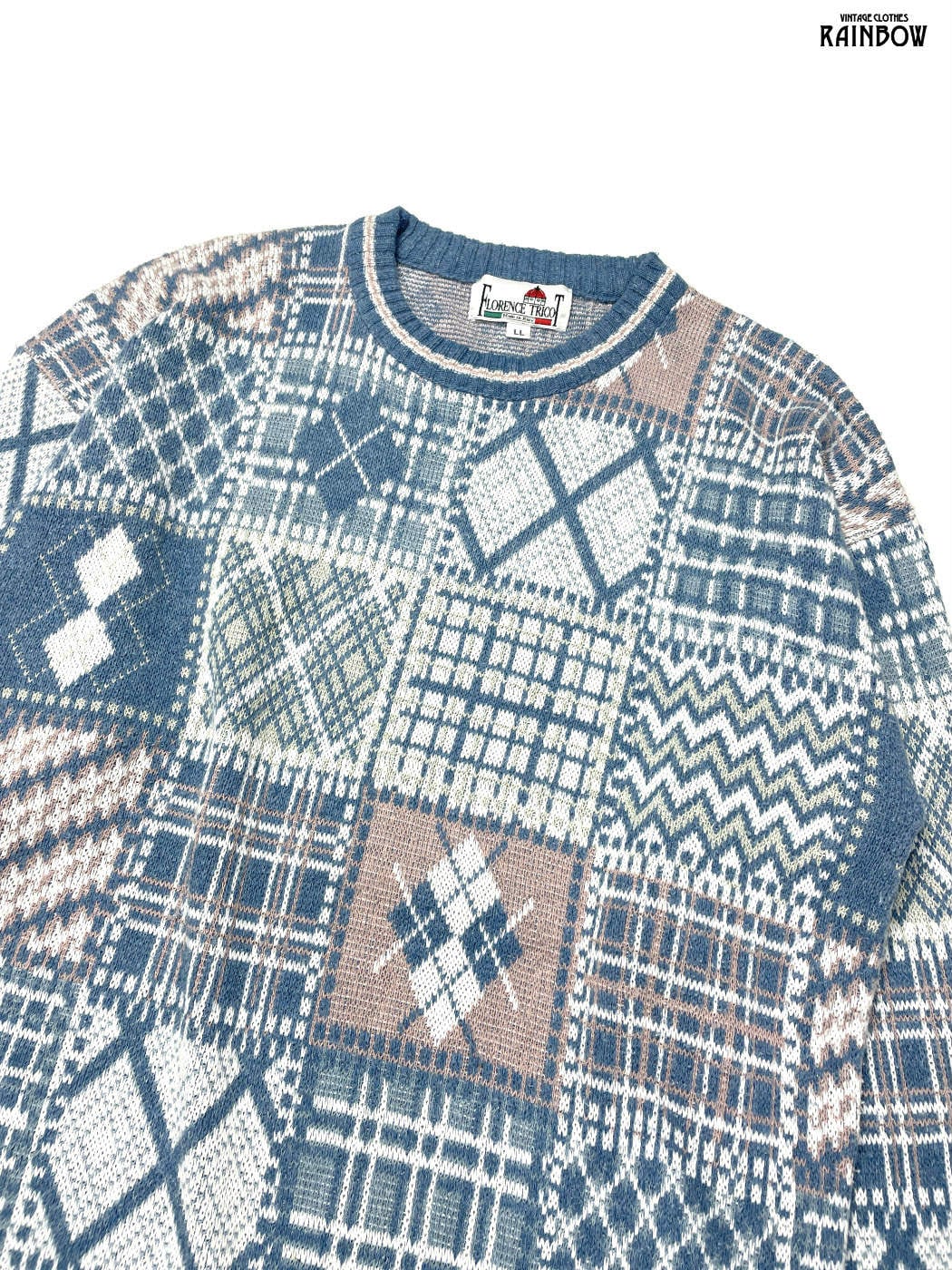 #ニット #セーター #ロングスリーブ #青 #水色 #総柄 #柄セーター