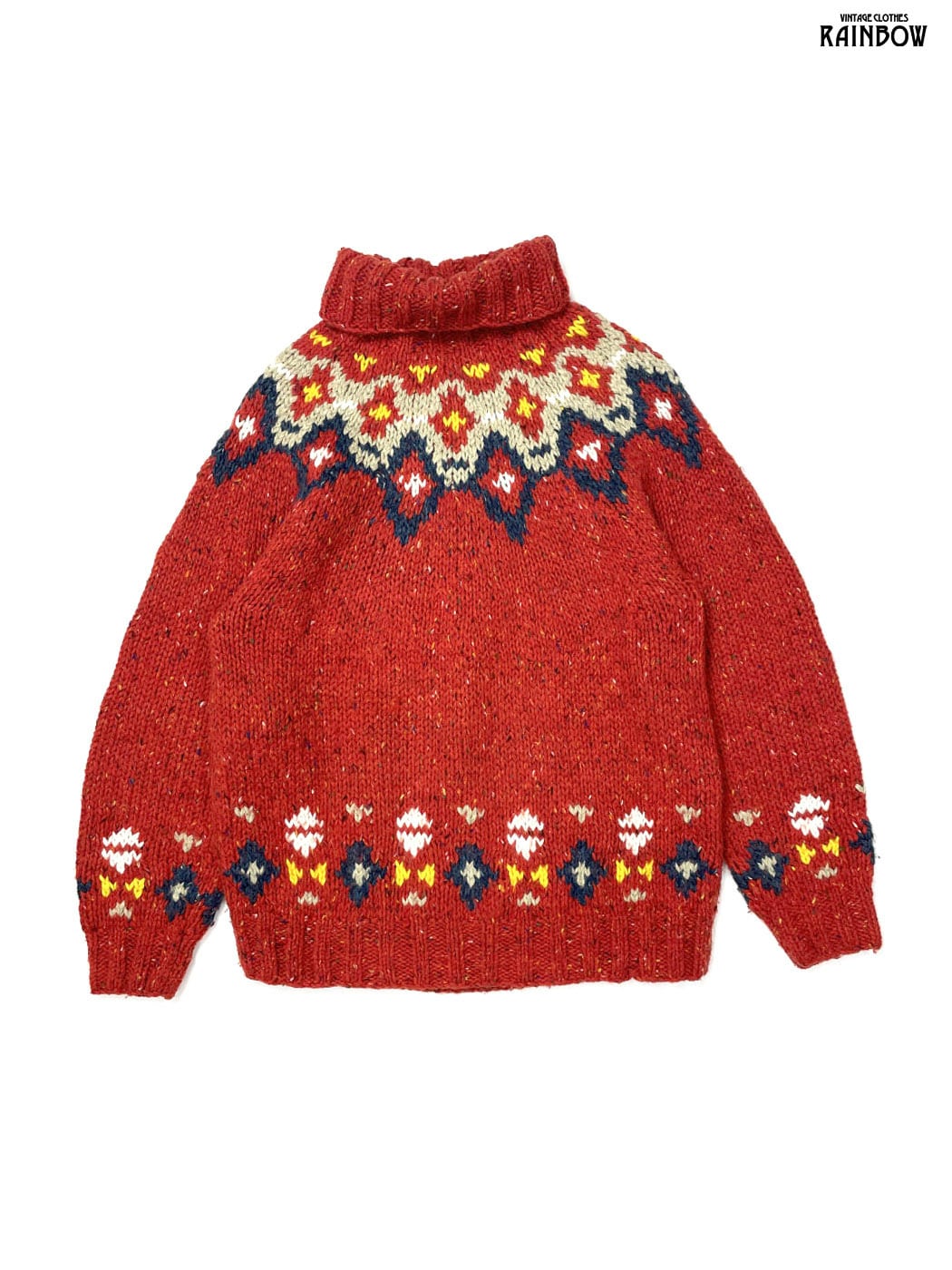 #ニット #セーター #ロングスリーブ #赤 #総柄 #タートルネック #ニット地 #柄セーター