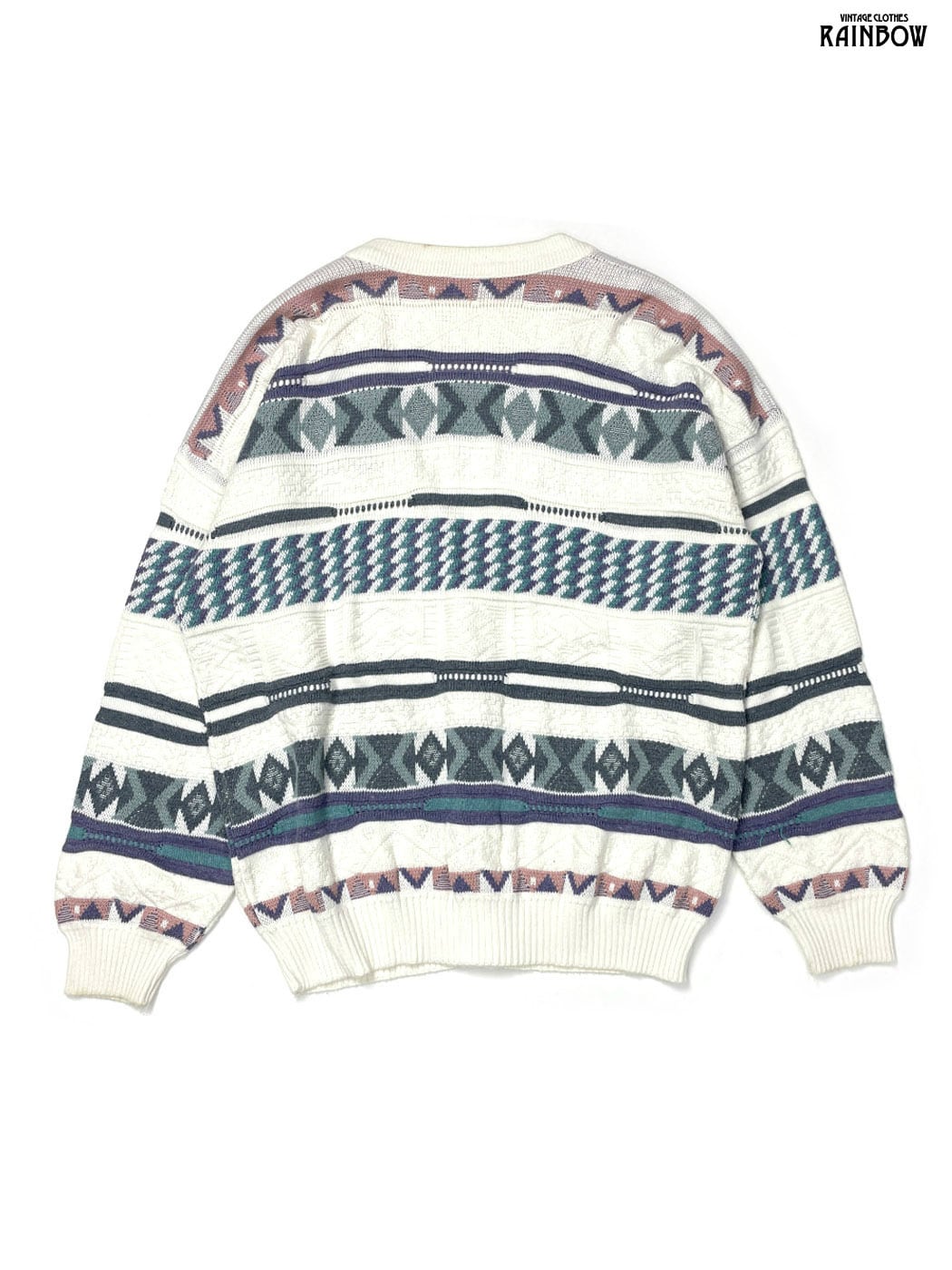 #ニット #カーディガン #ロングスリーブ #ベージュ #総柄 #柄カーディガン