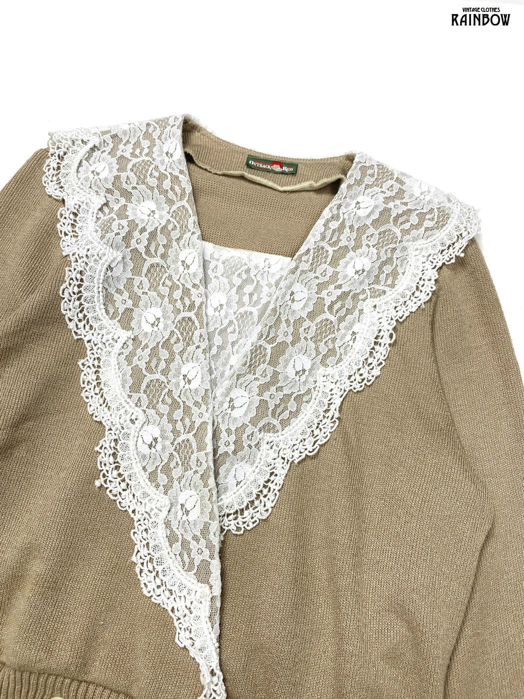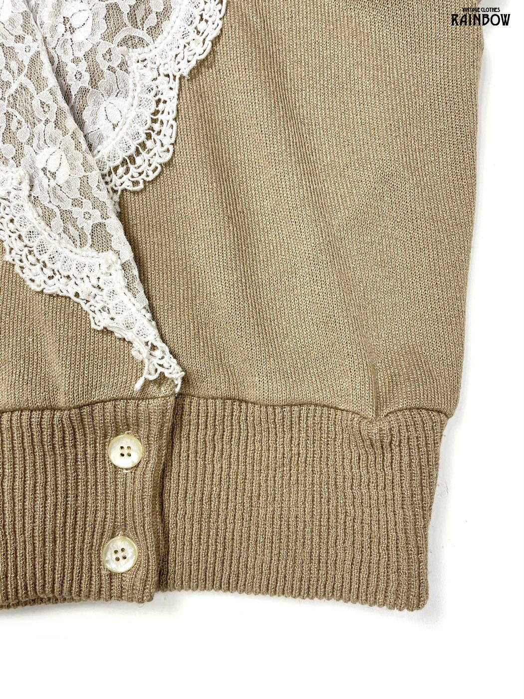 #ニット #カーディガン #ロングスリーブ #ベージュ #無地 #レース #セーラーカラー #ガーリー #無地カーディガン