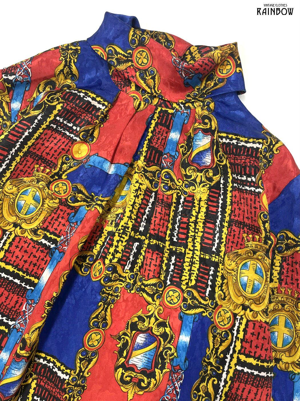 #ブラウス #bブラウス #ロングスリーブ #赤 #青 #ゴールド #総柄 #ハイネック #クラシック #ヴィンテージ #ヴィンテージシャツ