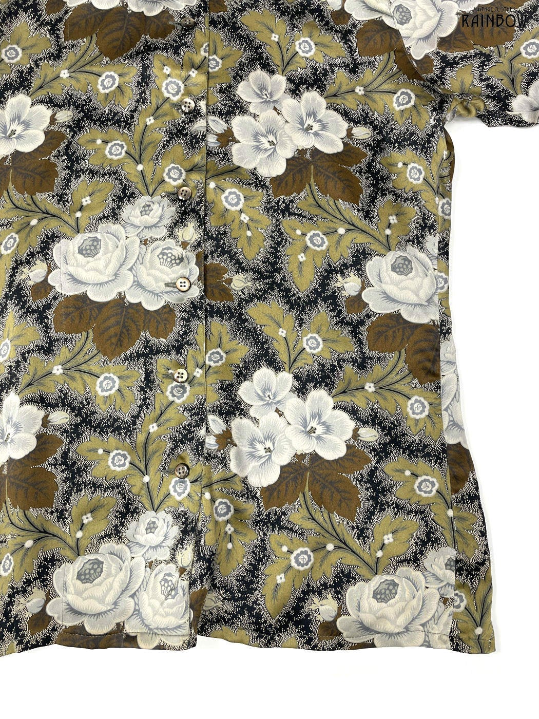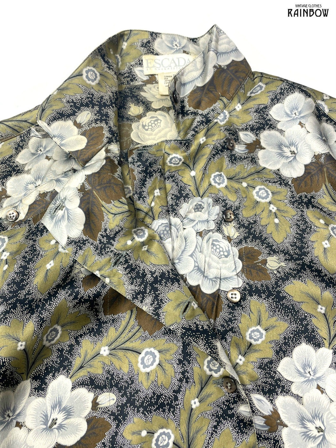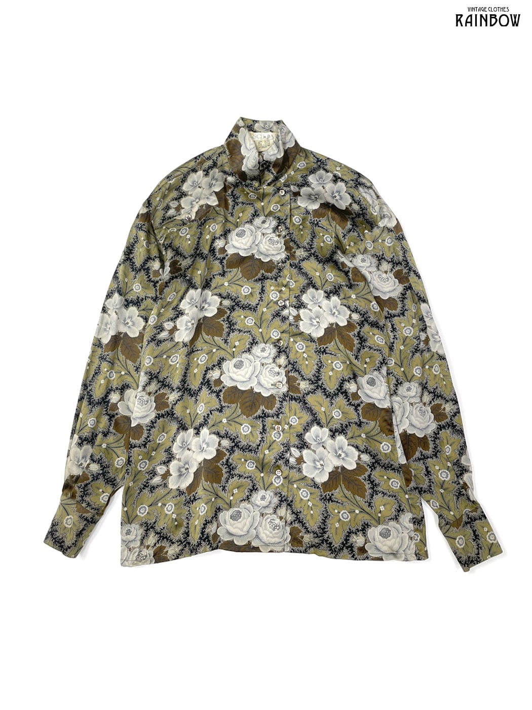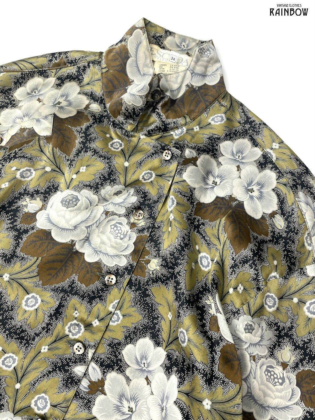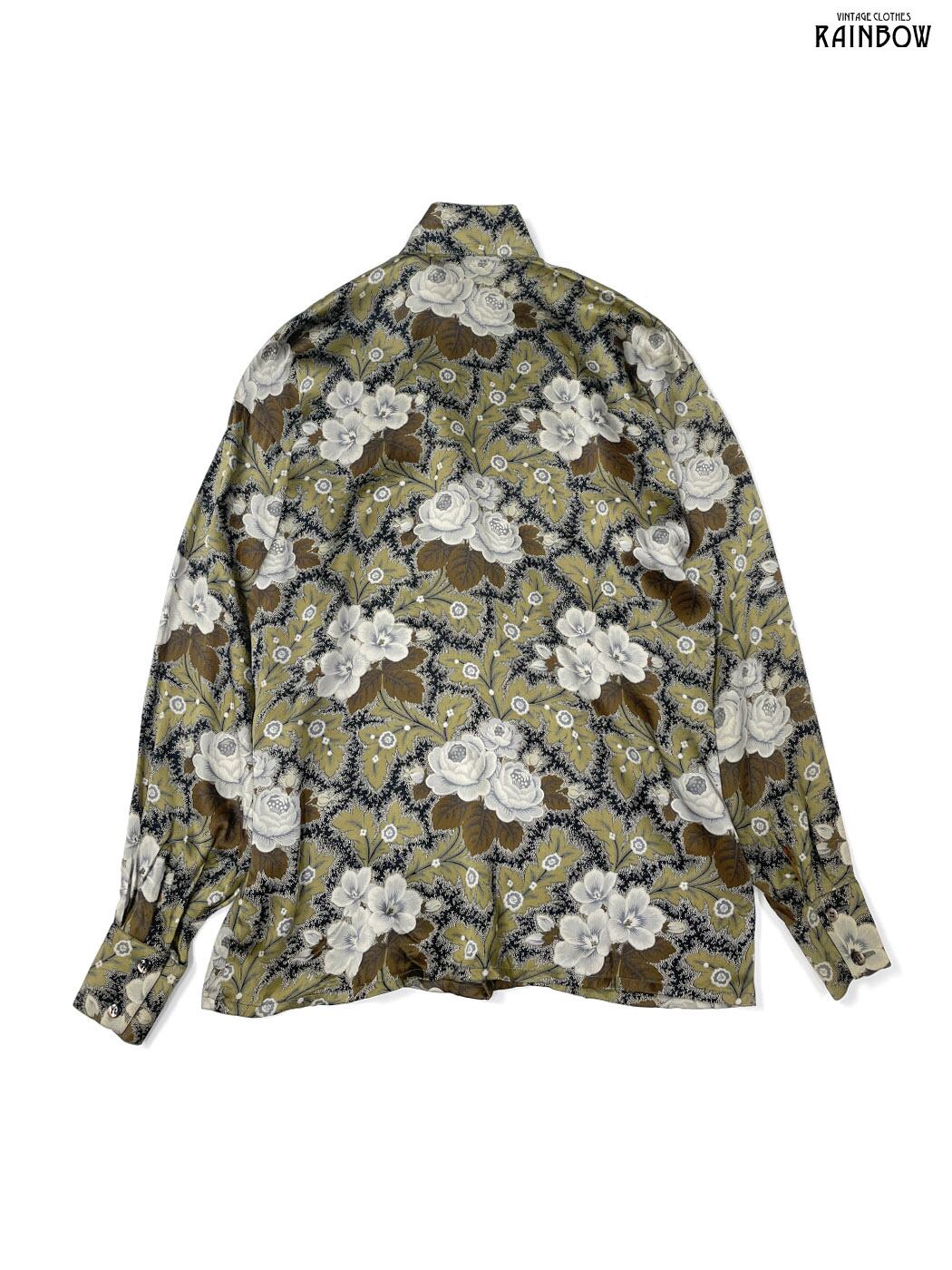 #ブラウス #bブラウス #ロングスリーブ #黒 #茶 #カーキ #花柄 #ドイツ製 #前開き #ハイネック #ヴィンテージ #シルク #シルクシャツ