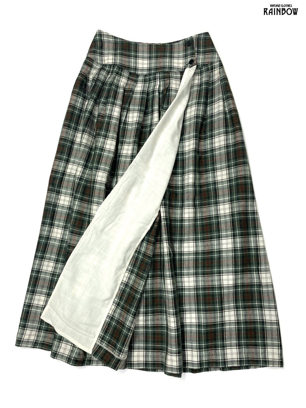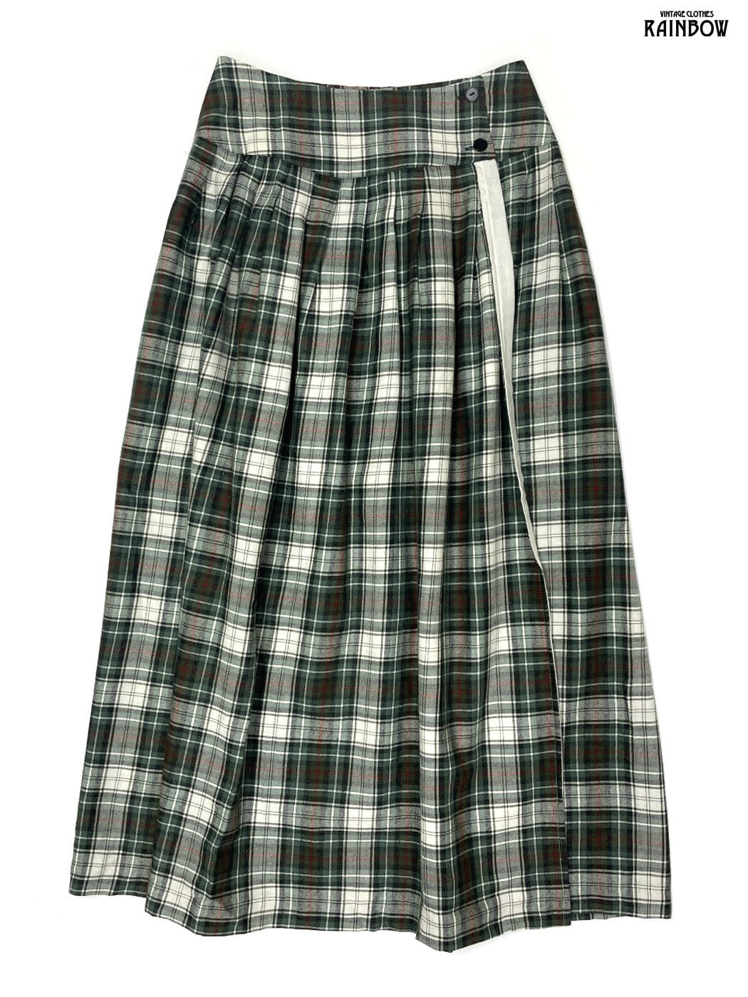 #スカート #ロング丈 #緑 #チェック柄 #スコットランド製 #巻きデザイン #ウール #秋冬チェック柄スカート
