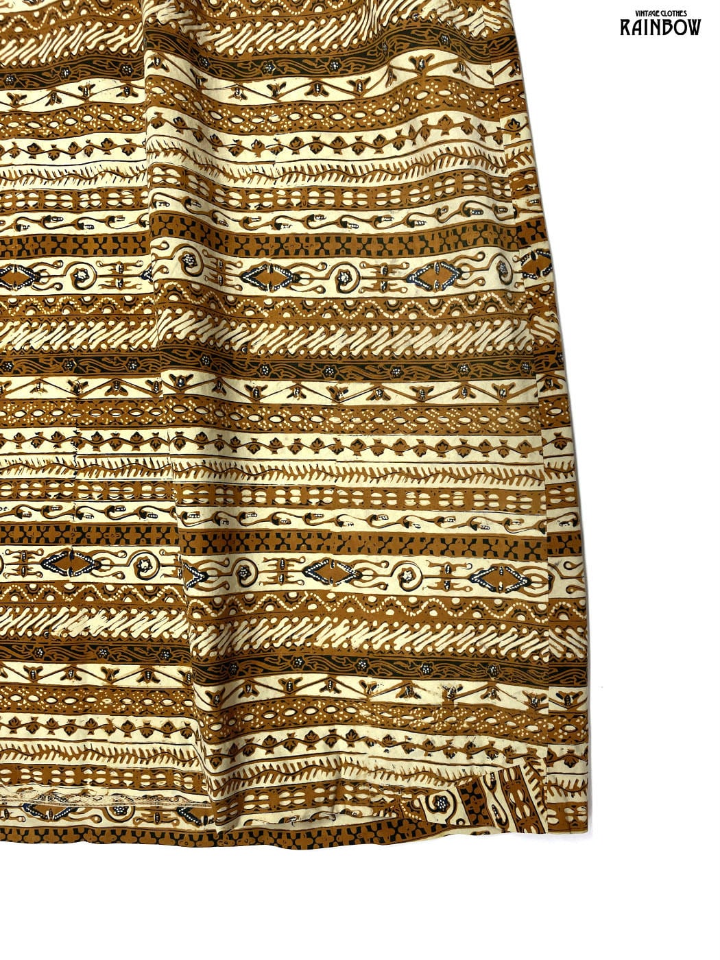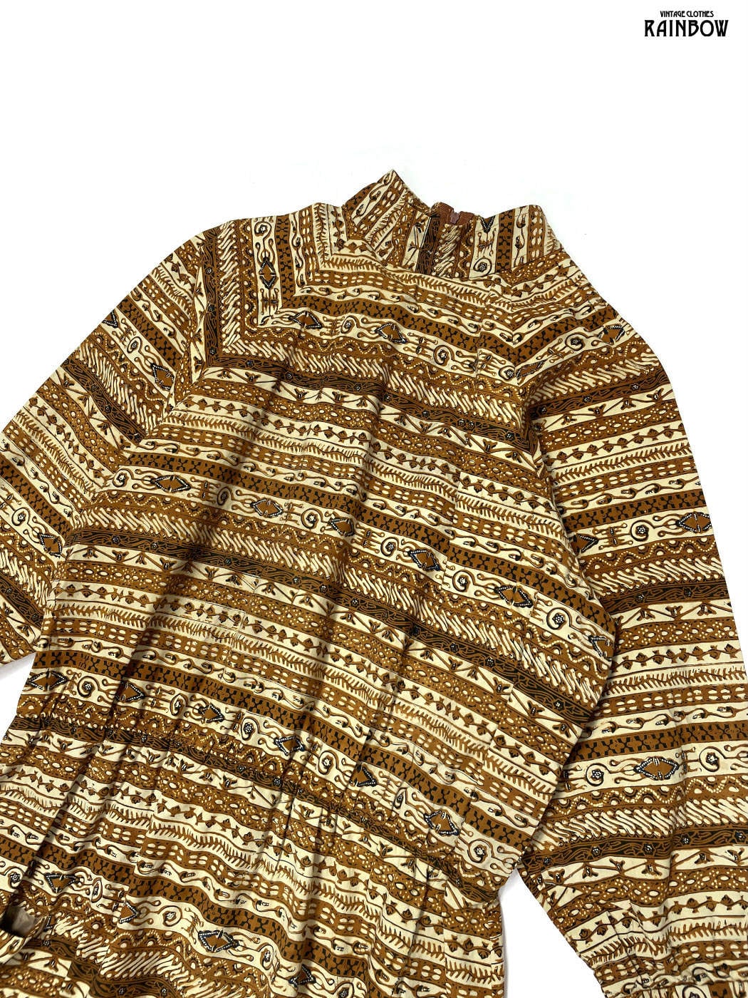 古着 総柄 コットン ロング丈 長袖 ワンピース 茶 (otu2509012)