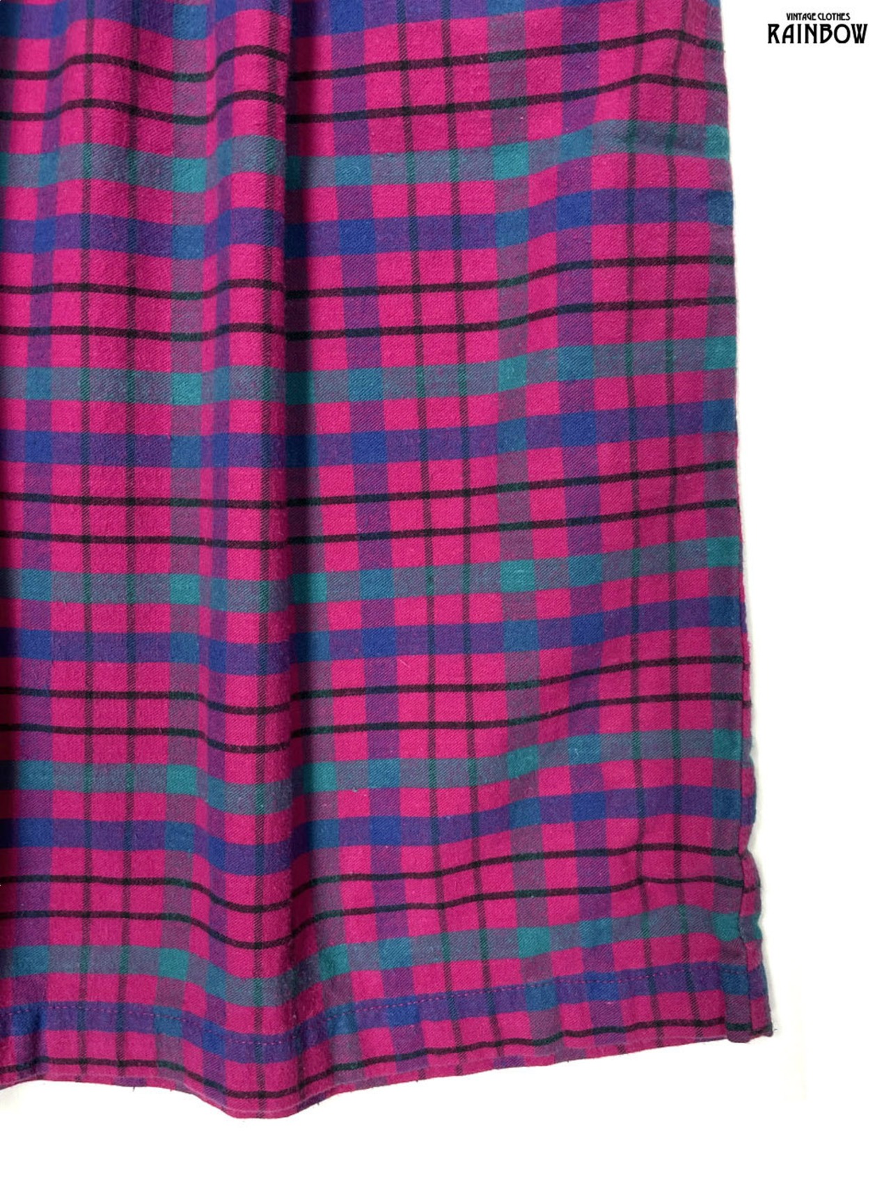 #スカート #膝丈 #ゴムウエスト #ピンク #チェック柄 #アメリカ製 #コットン #秋冬チェック柄スカート
