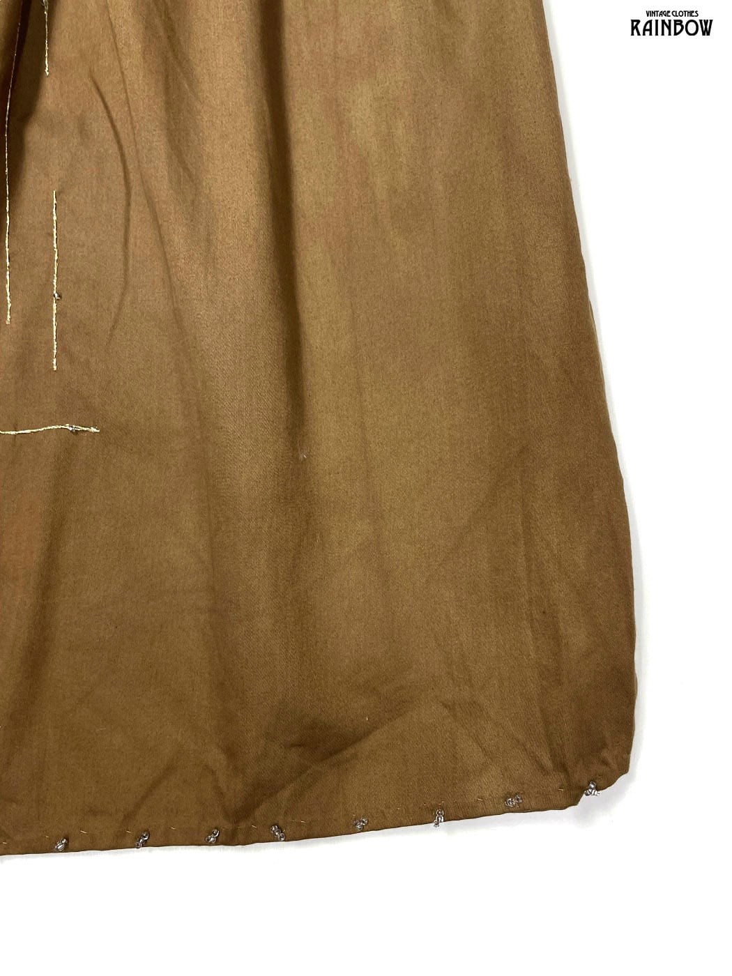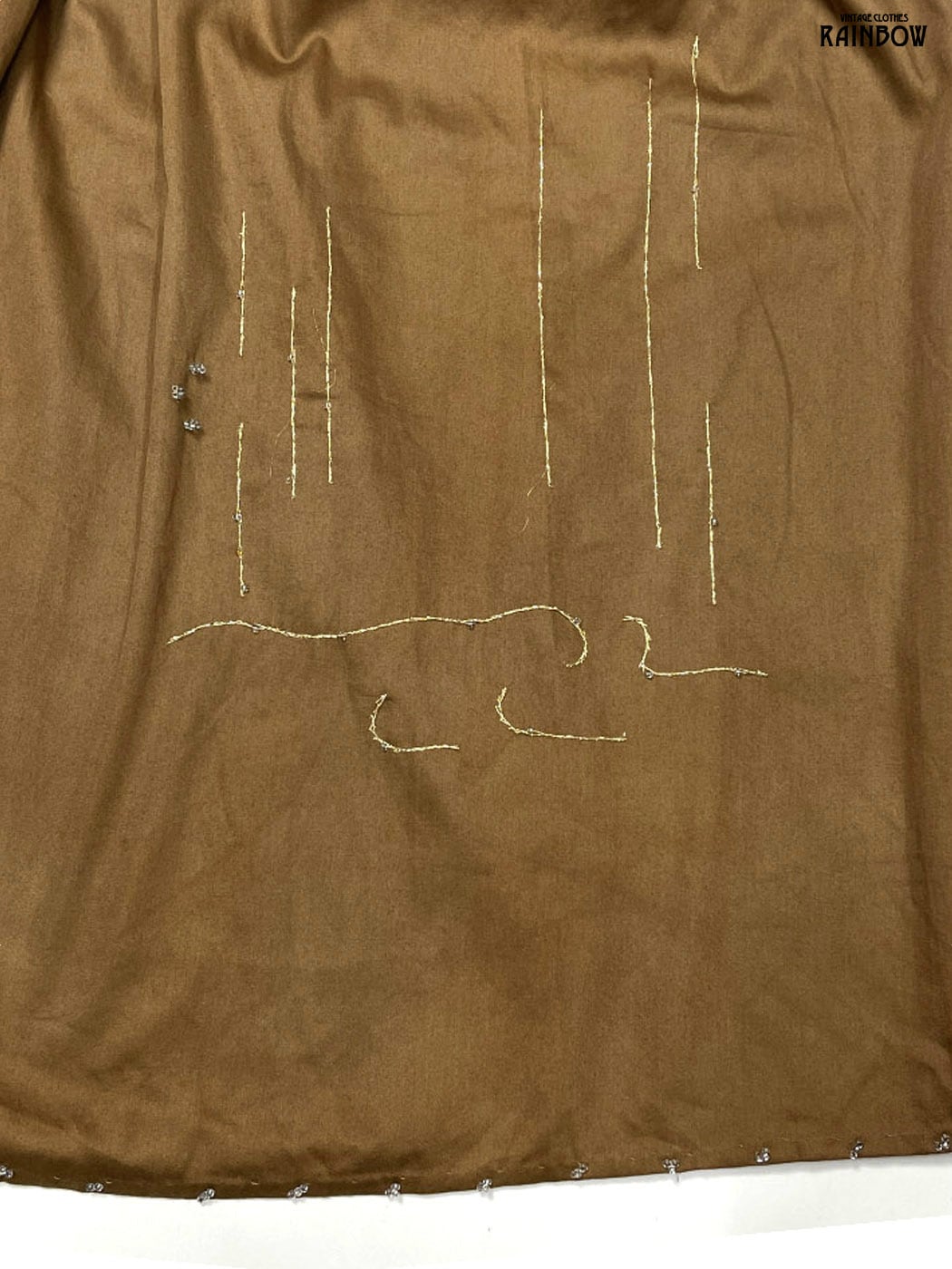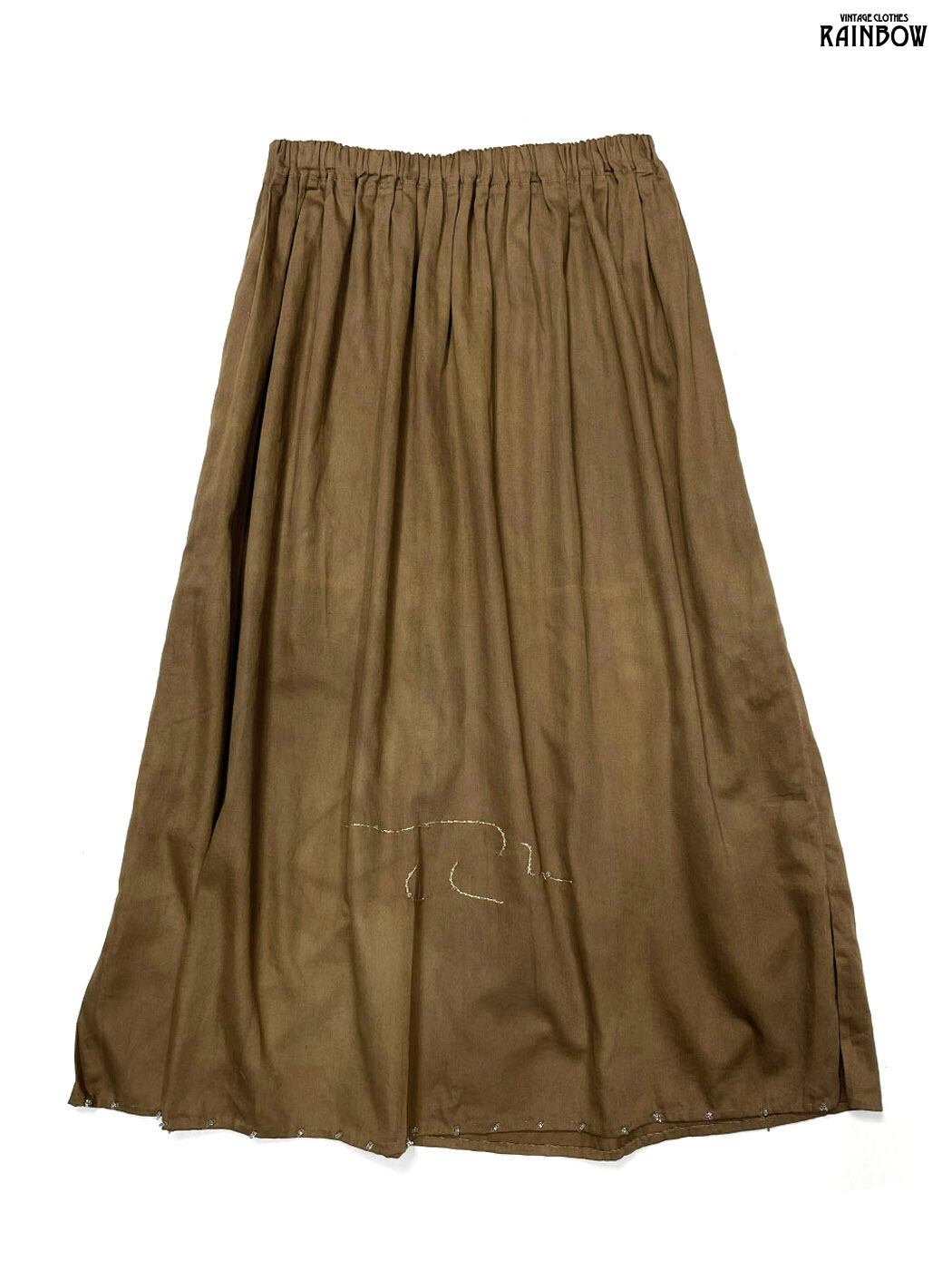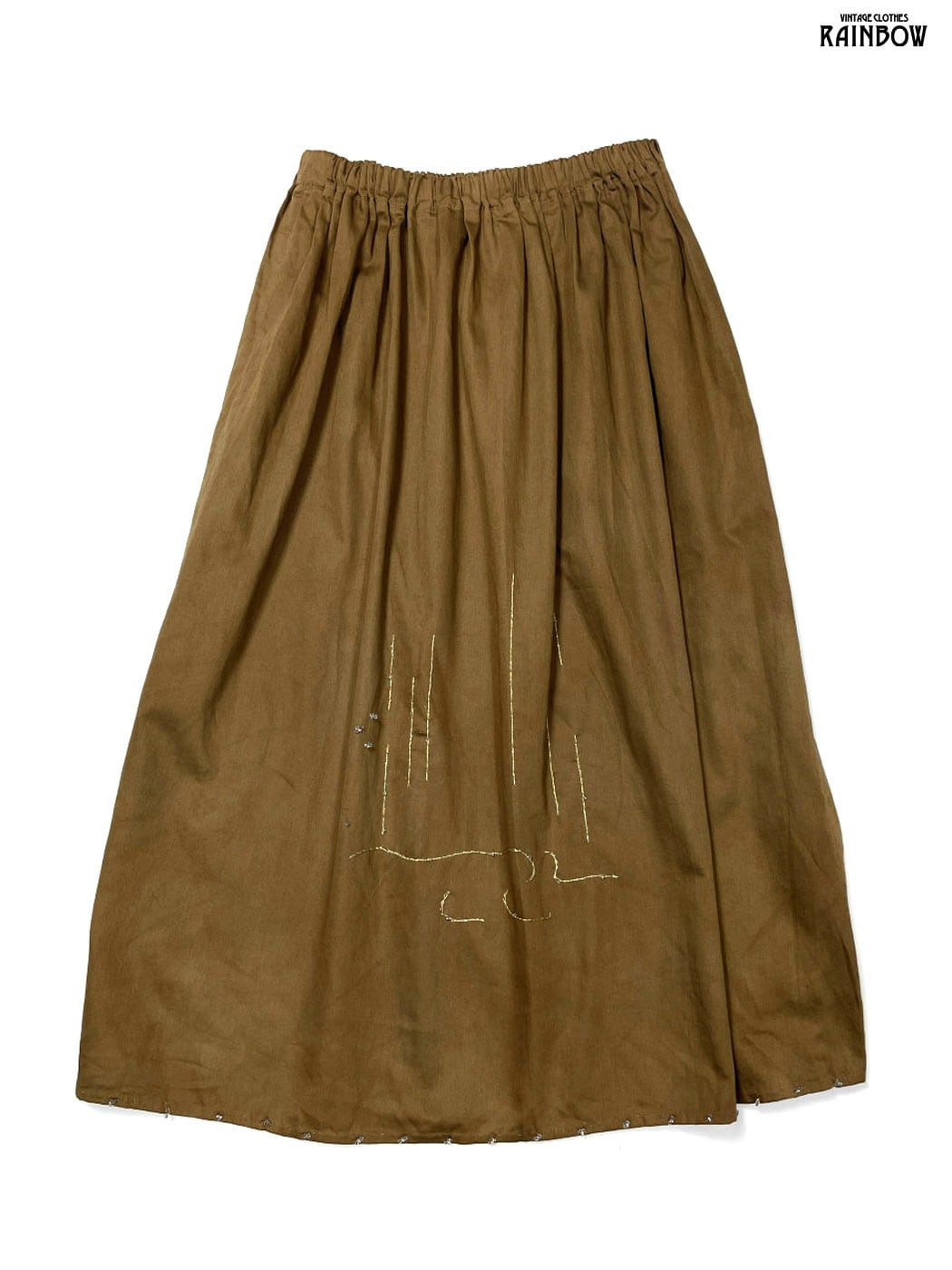 #スカート #膝丈 #ゴムウエスト #茶 #無地 #刺繍 #ビジュー #コットン #秋冬無地柄スカート