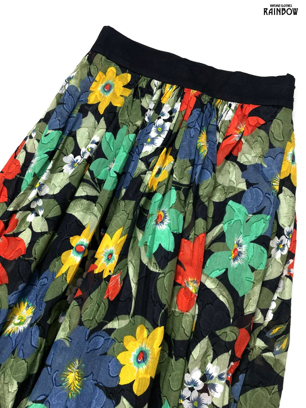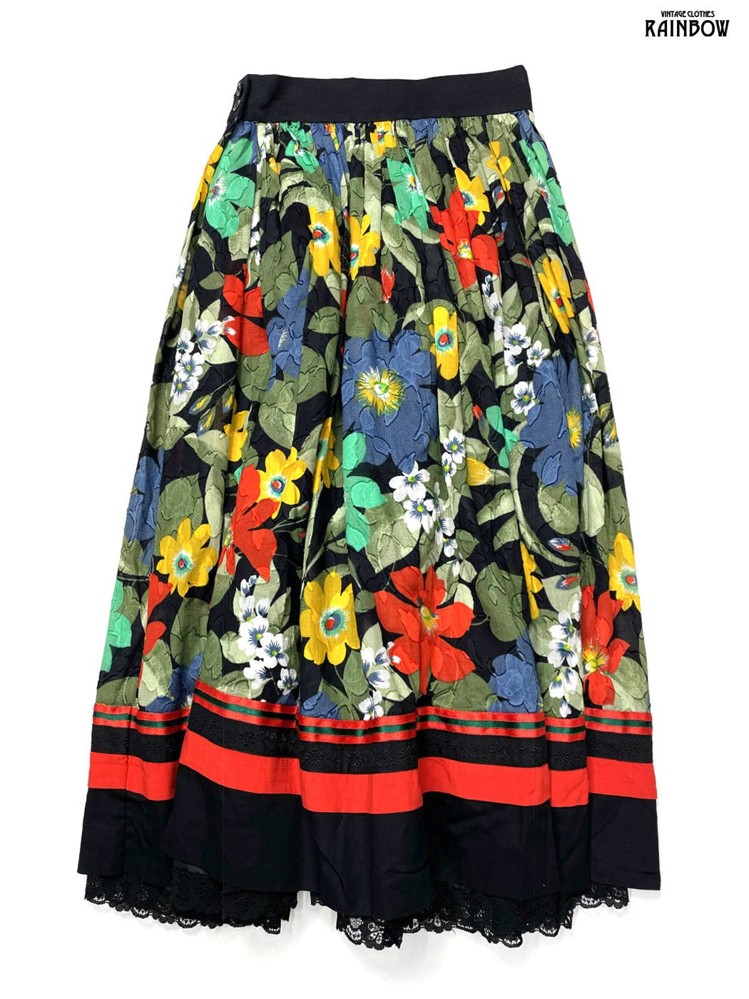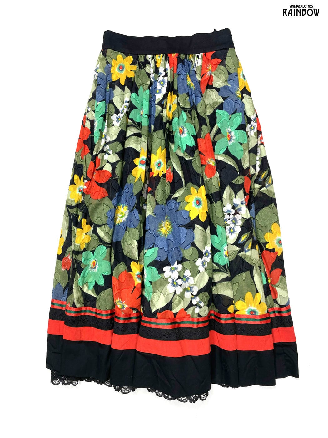 #スカート #ロング丈 #フレア #緑 #花柄 #レース #クラシック #コットン #花柄スカート