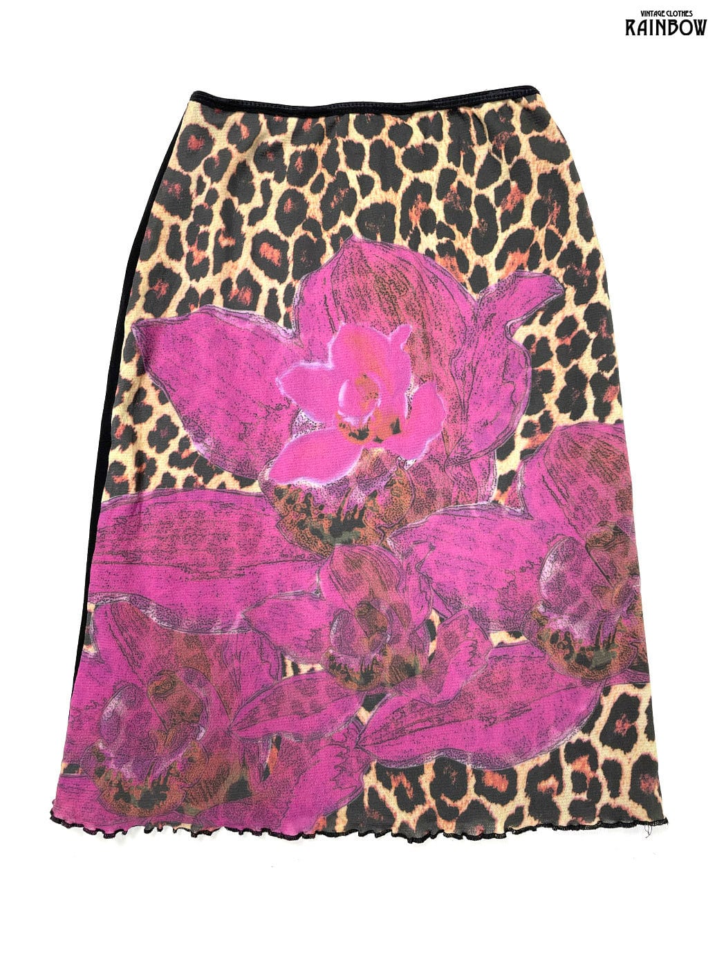 #スカート #ミニ丈 #ゴムウエスト #ピンク #花柄 #総柄 #レオパード柄 #アメリカ製 #クラシック #ナイロン #花柄スカート