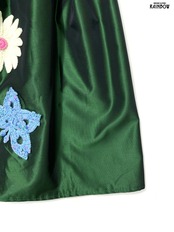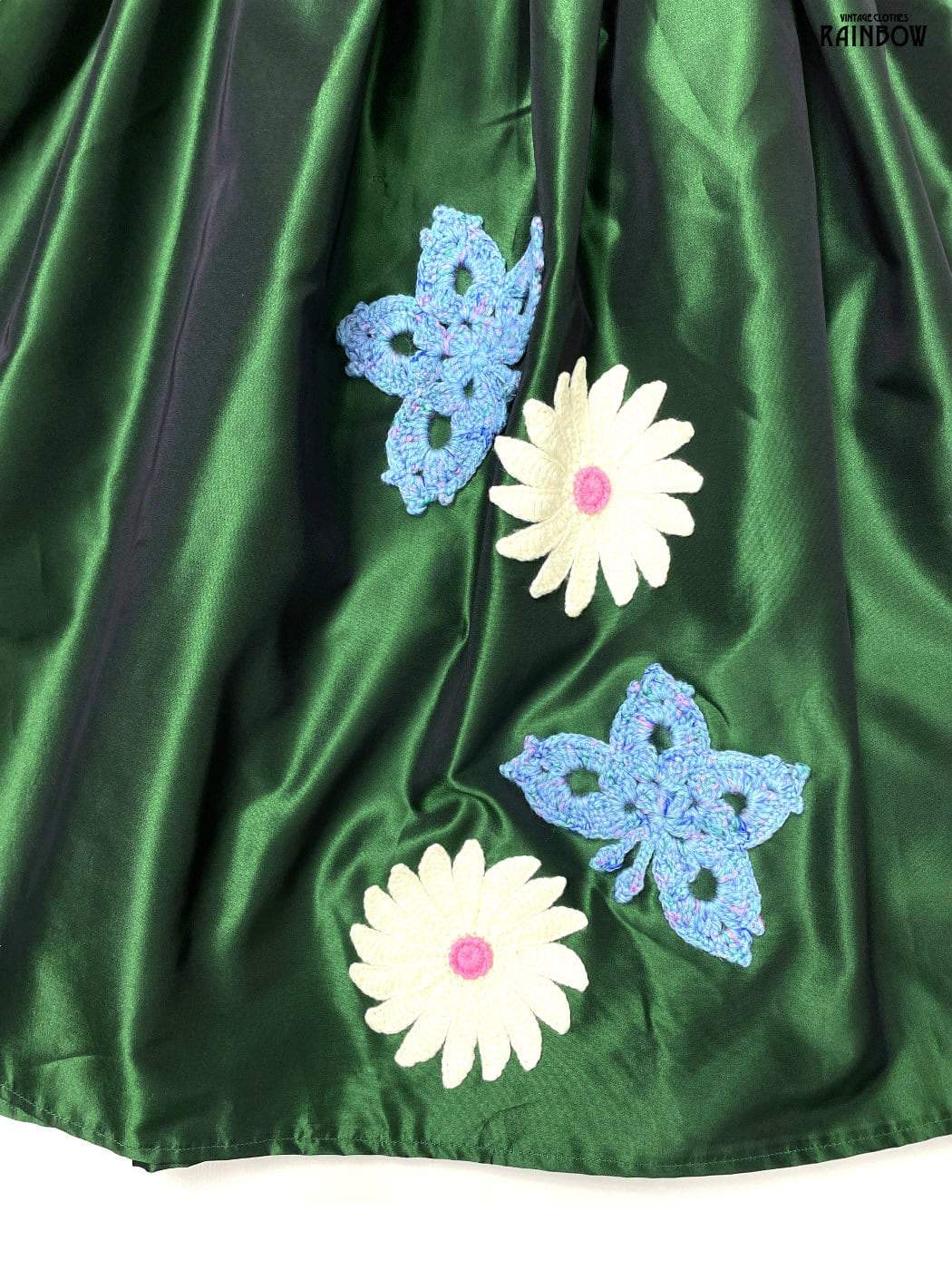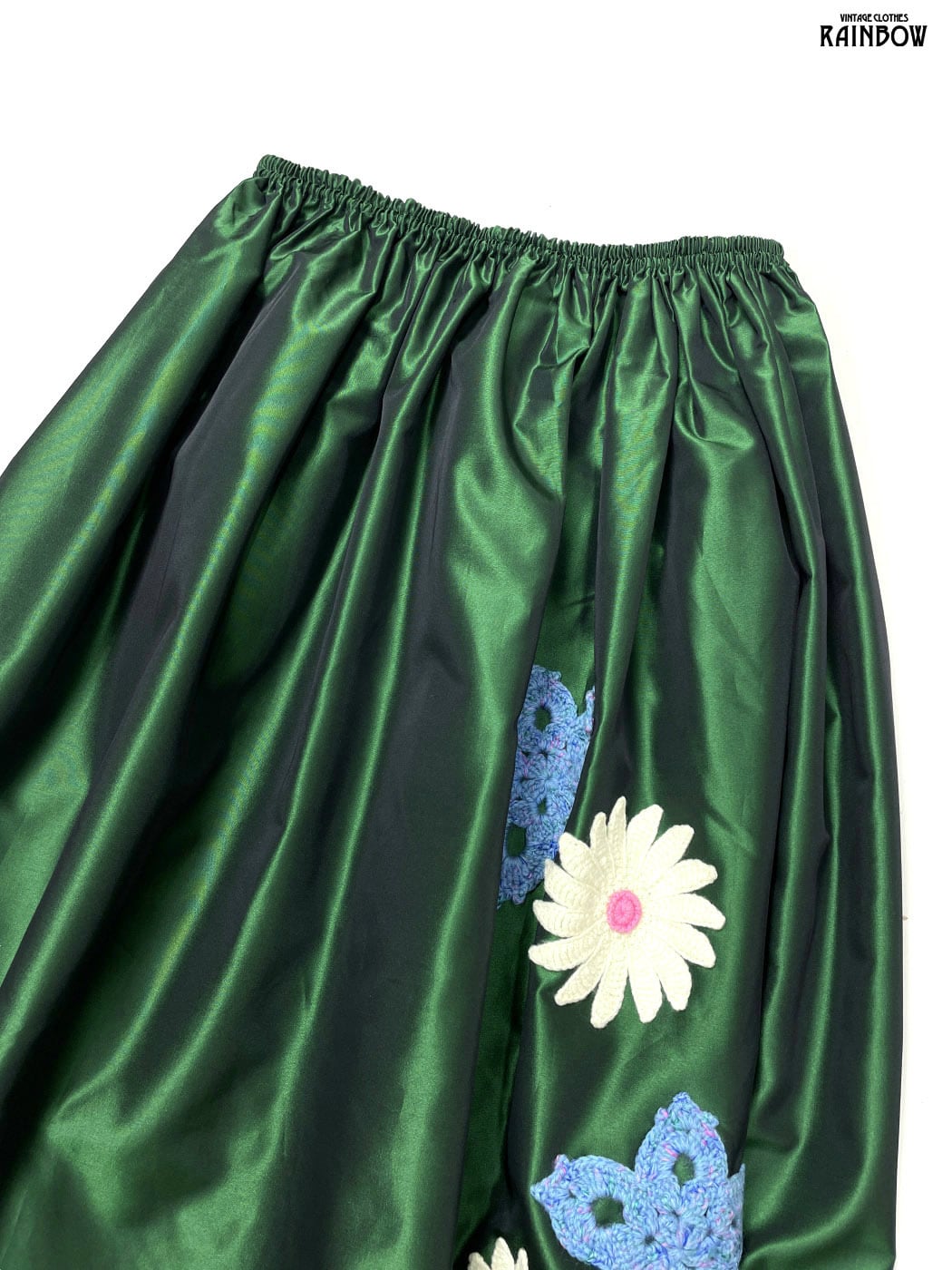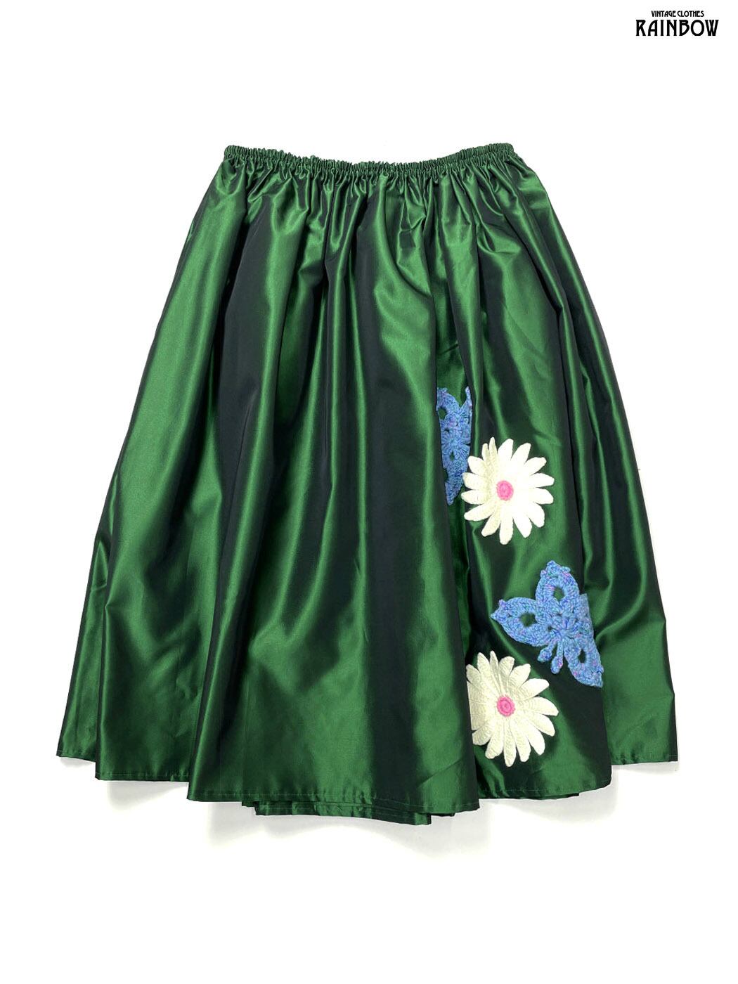 #スカート #膝丈 #ゴムウエスト #緑 #花柄 #アップリケ #花柄スカート