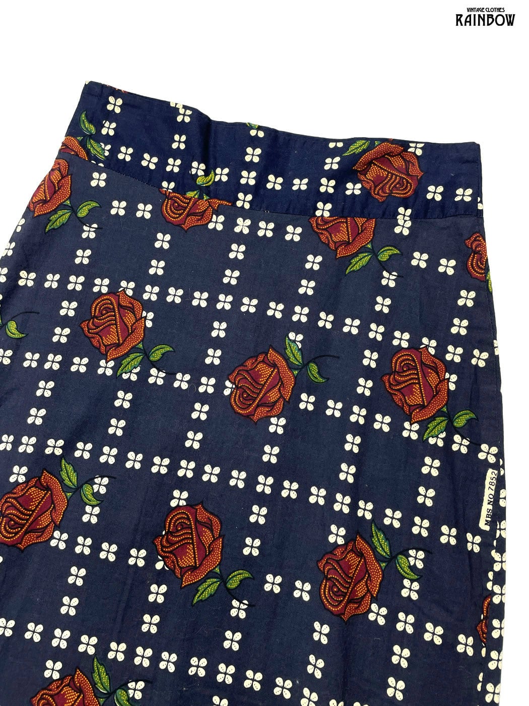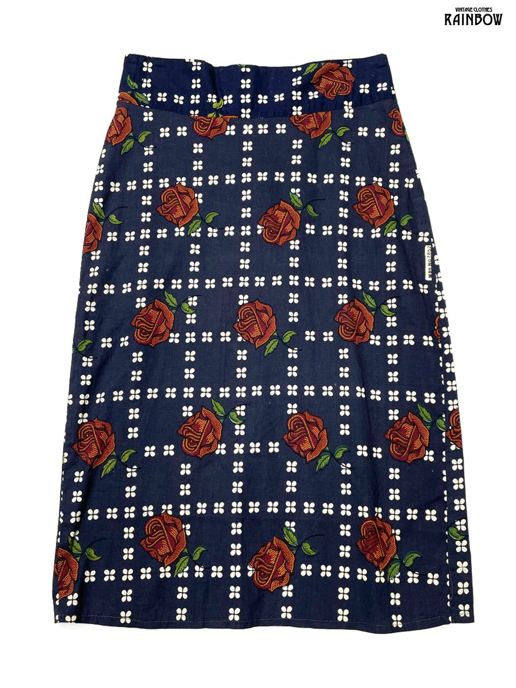 #スカート #膝丈 #紺 #スリット #花柄 #クラシック #コットン #花柄スカート