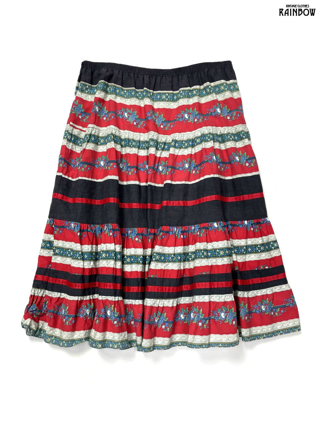 #スカート #膝丈 #ティアード #赤 #花柄 #クラシック #コットン #花柄スカート