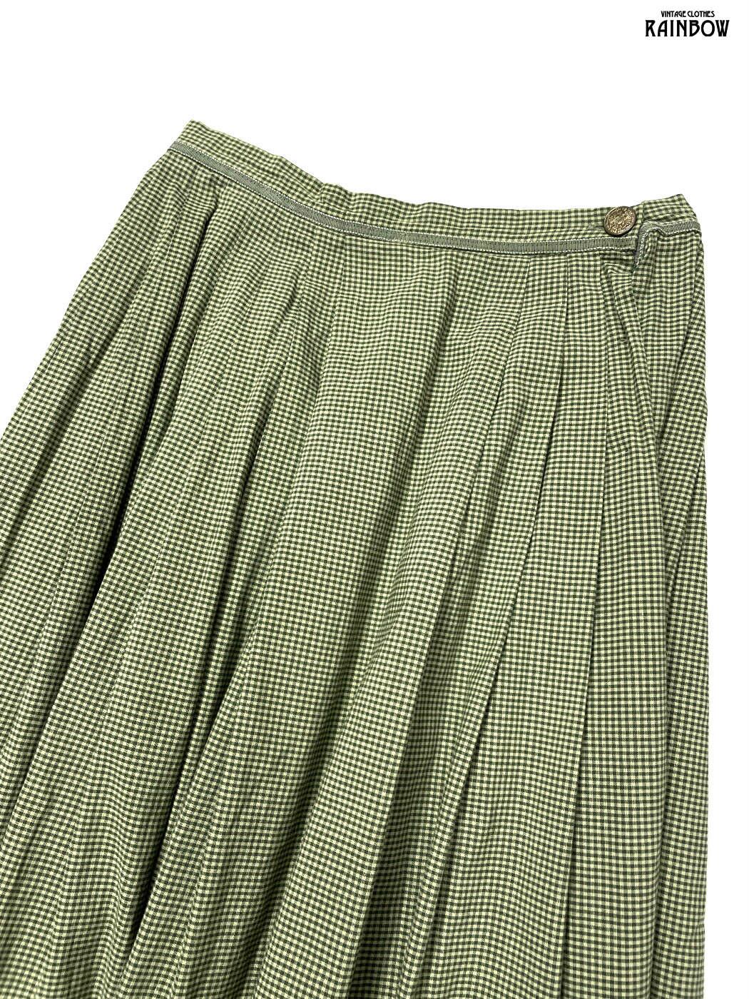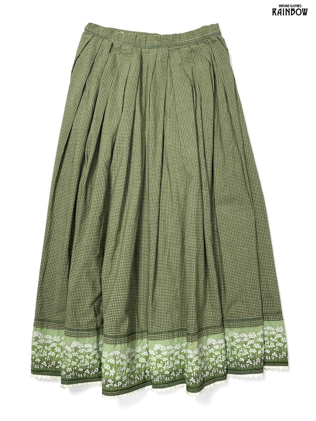 #スカート #ロング丈 #フレア #緑 #チェック柄 #ギンガムチェック柄 #レース #ガーリー #コットン #秋冬チェック柄スカート