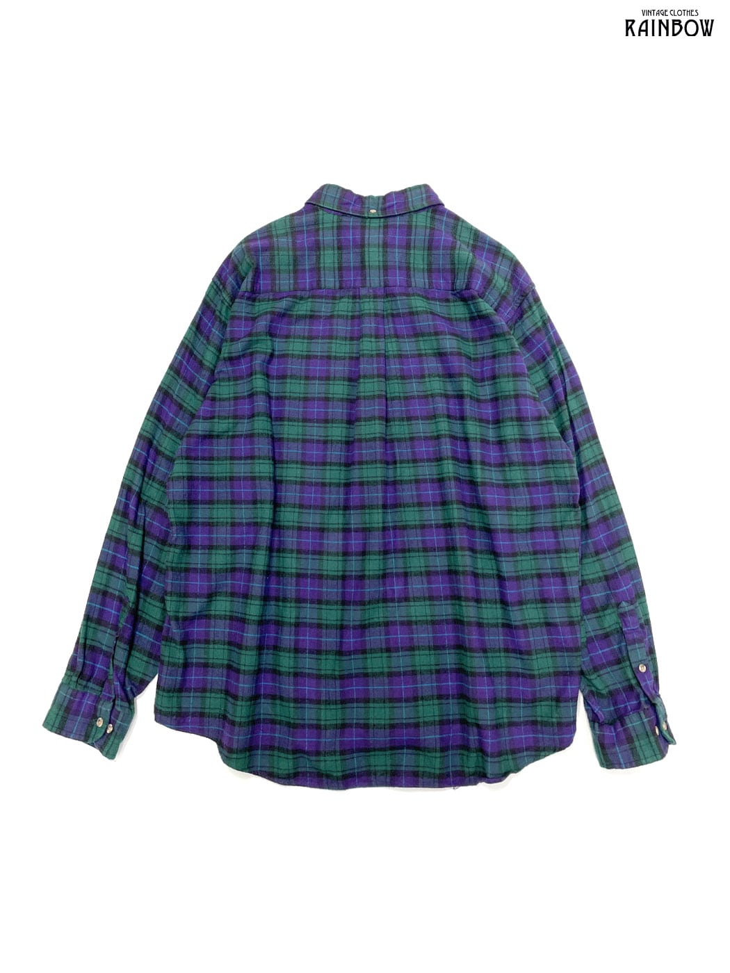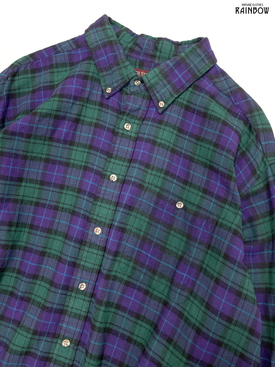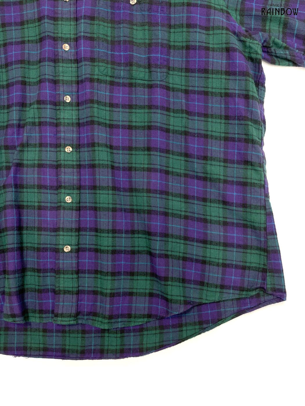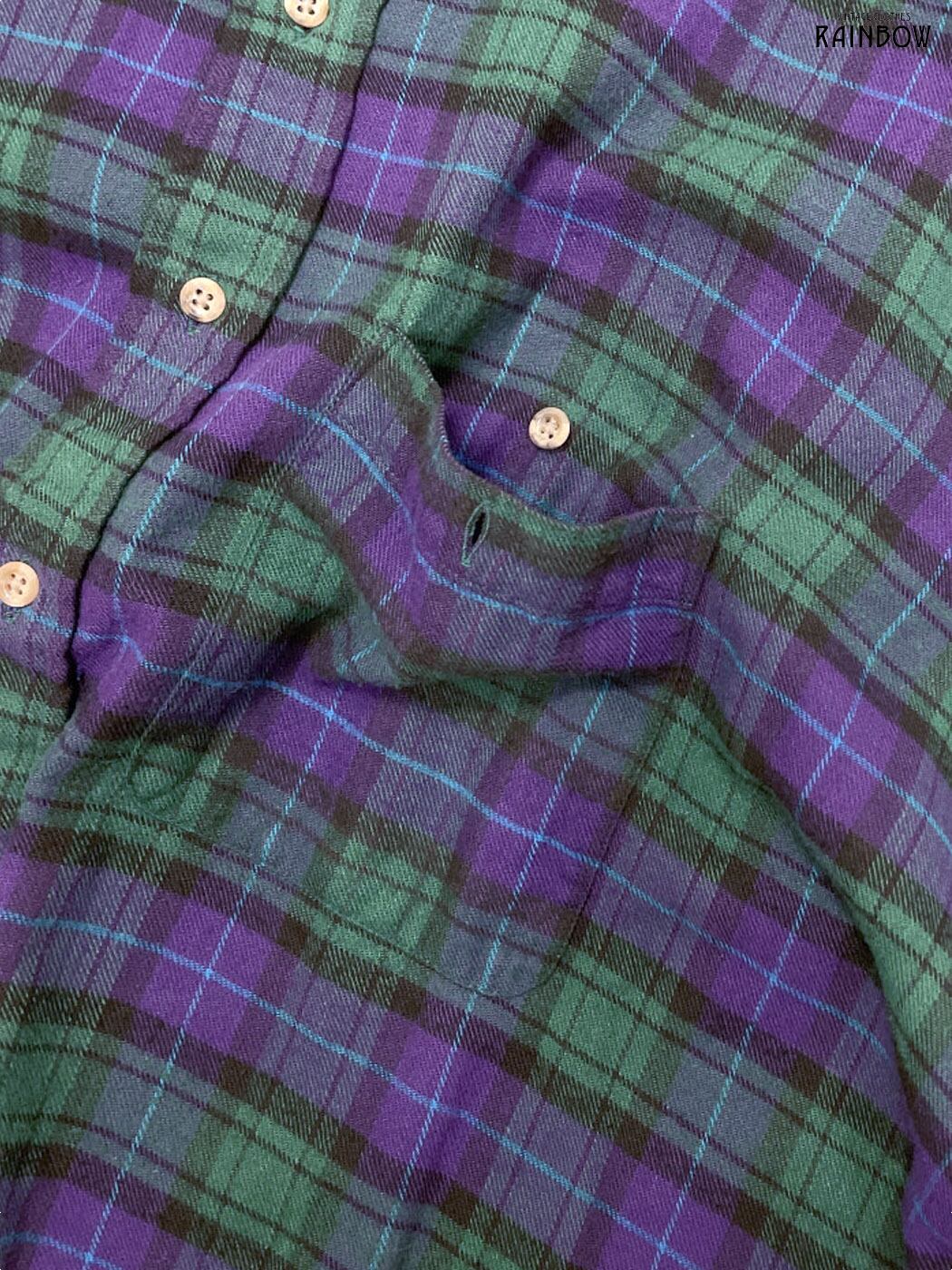 #ブラウス #シャツ #ロングスリーブ #緑 #紫 #チェック柄 #前開き #クラシック #コットン #フランネル #ネルシャツ