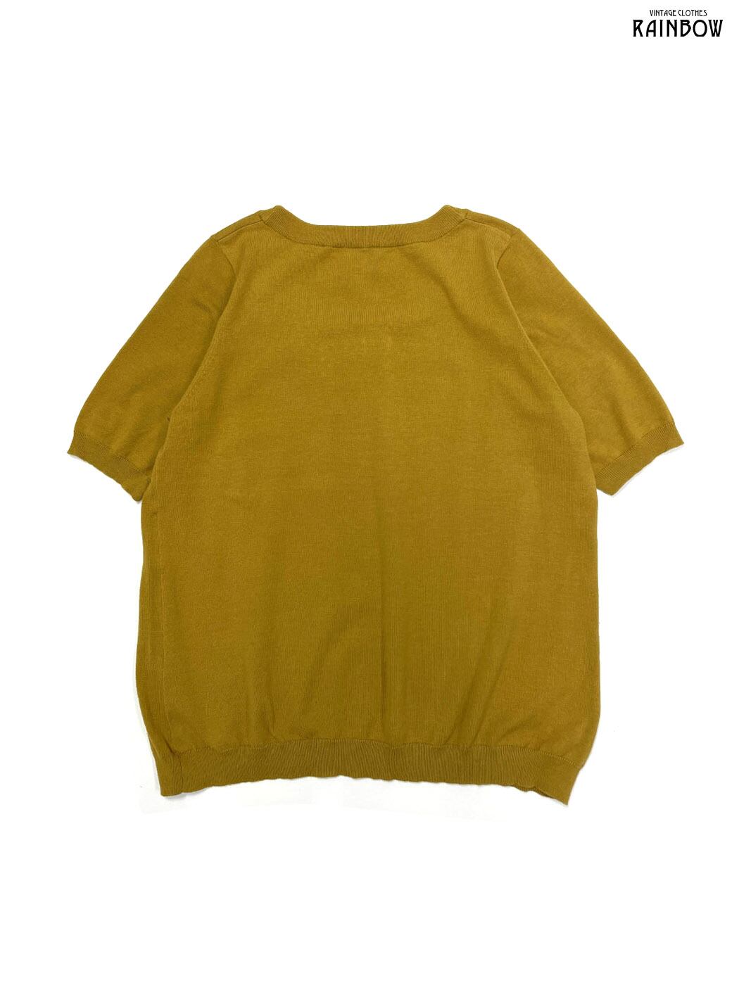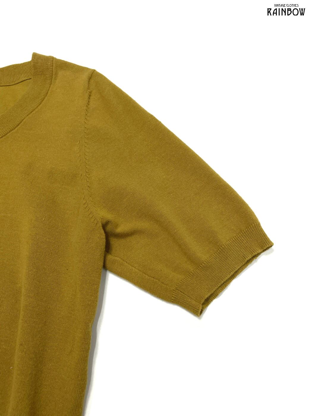 #ニット #半袖ニット #ハーフスリーブ #黄 #マスタード #無地 #ガーリー #ニット地 #半袖ニット