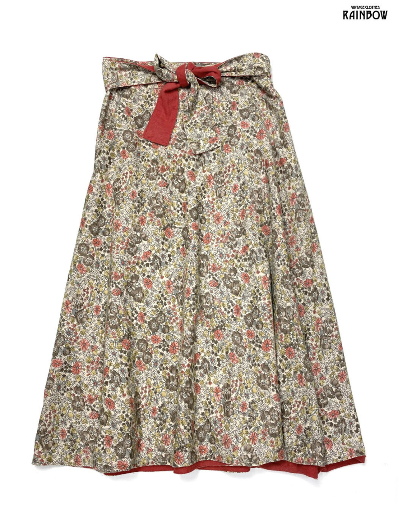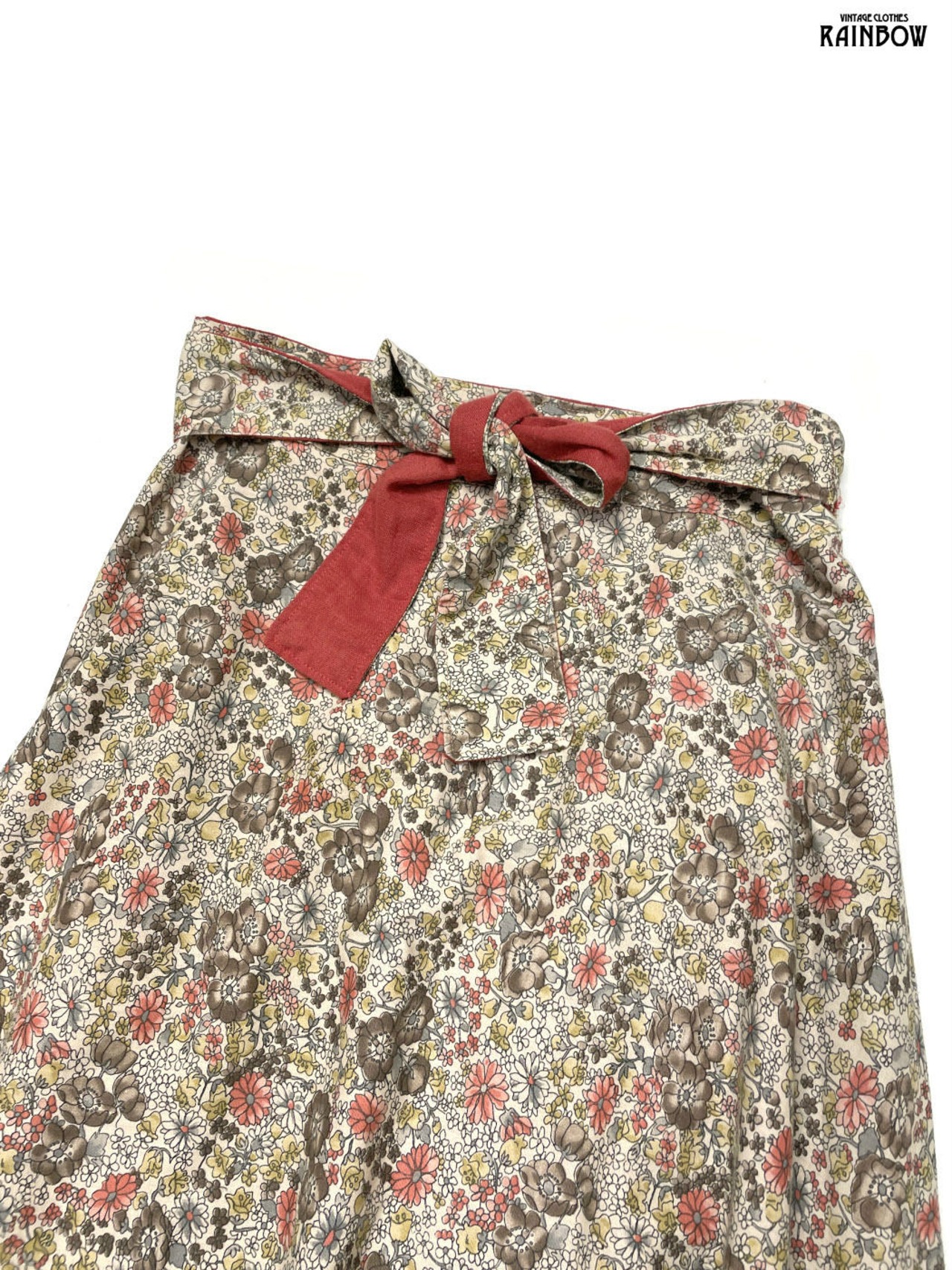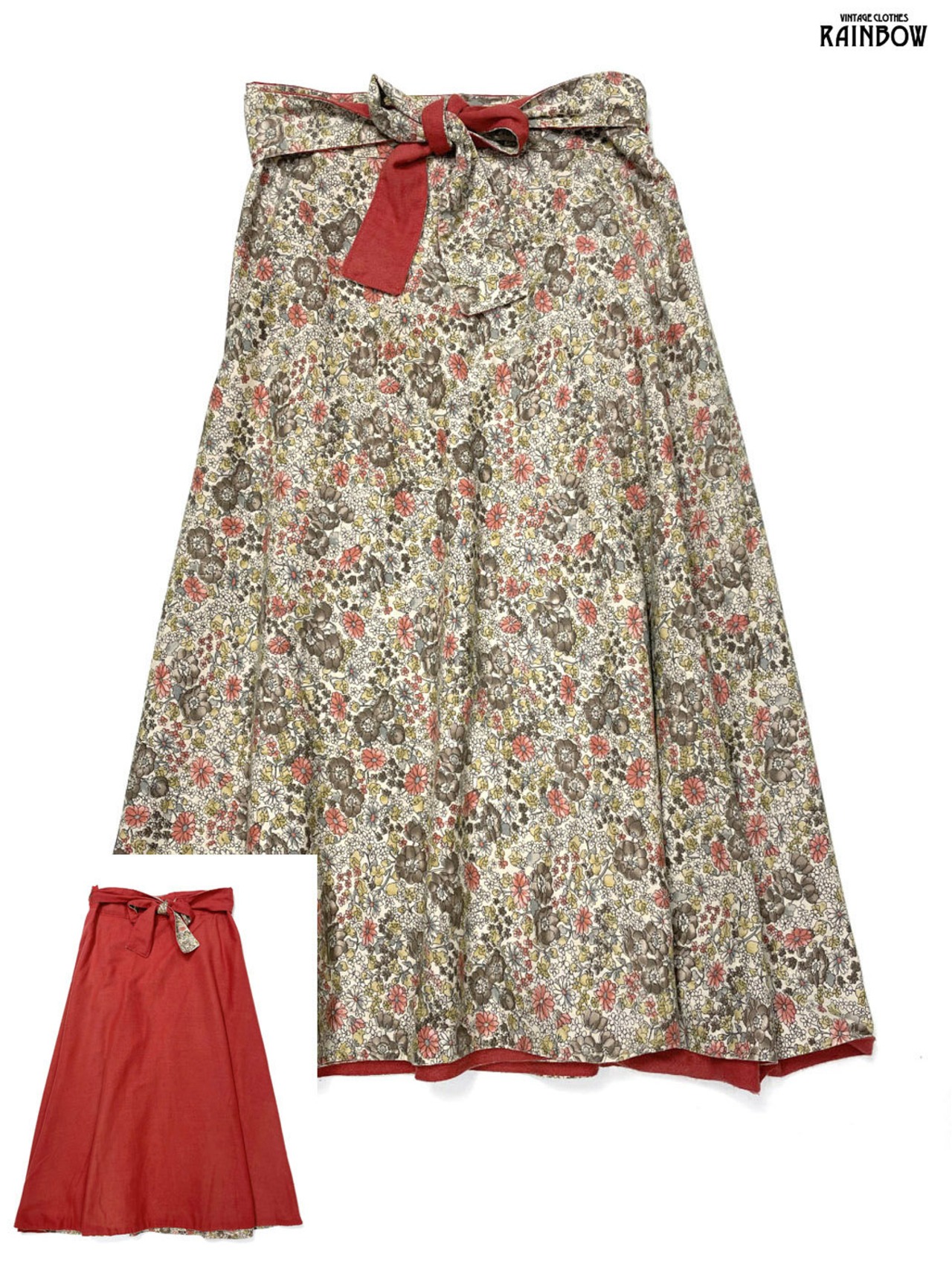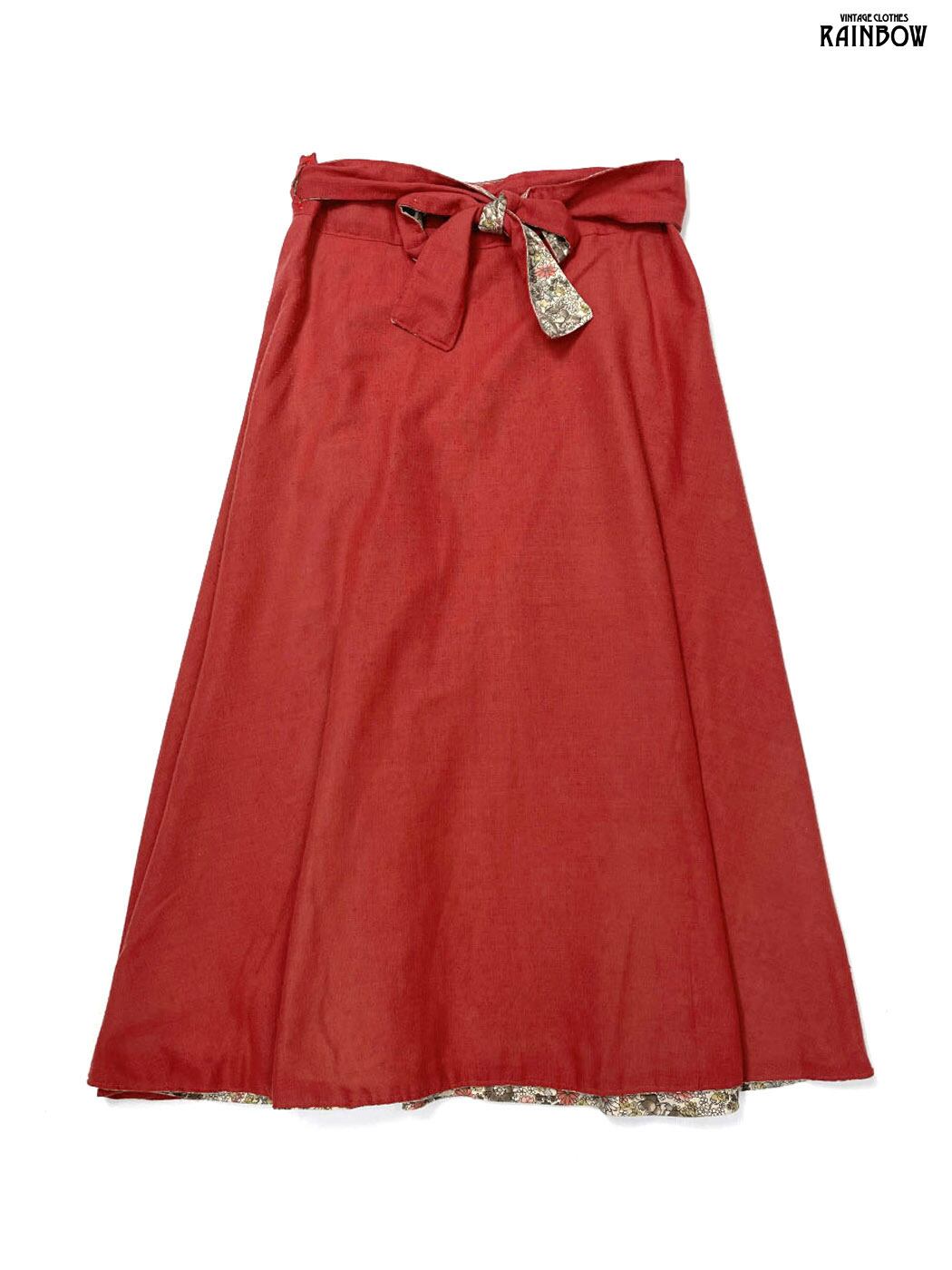 #スカート #ロングスリーブ #ロング丈 #赤 #ベージュ #リバーシブル #花柄 #無地 #巻きデザイン #ガーリー #コットン #花柄スカート