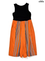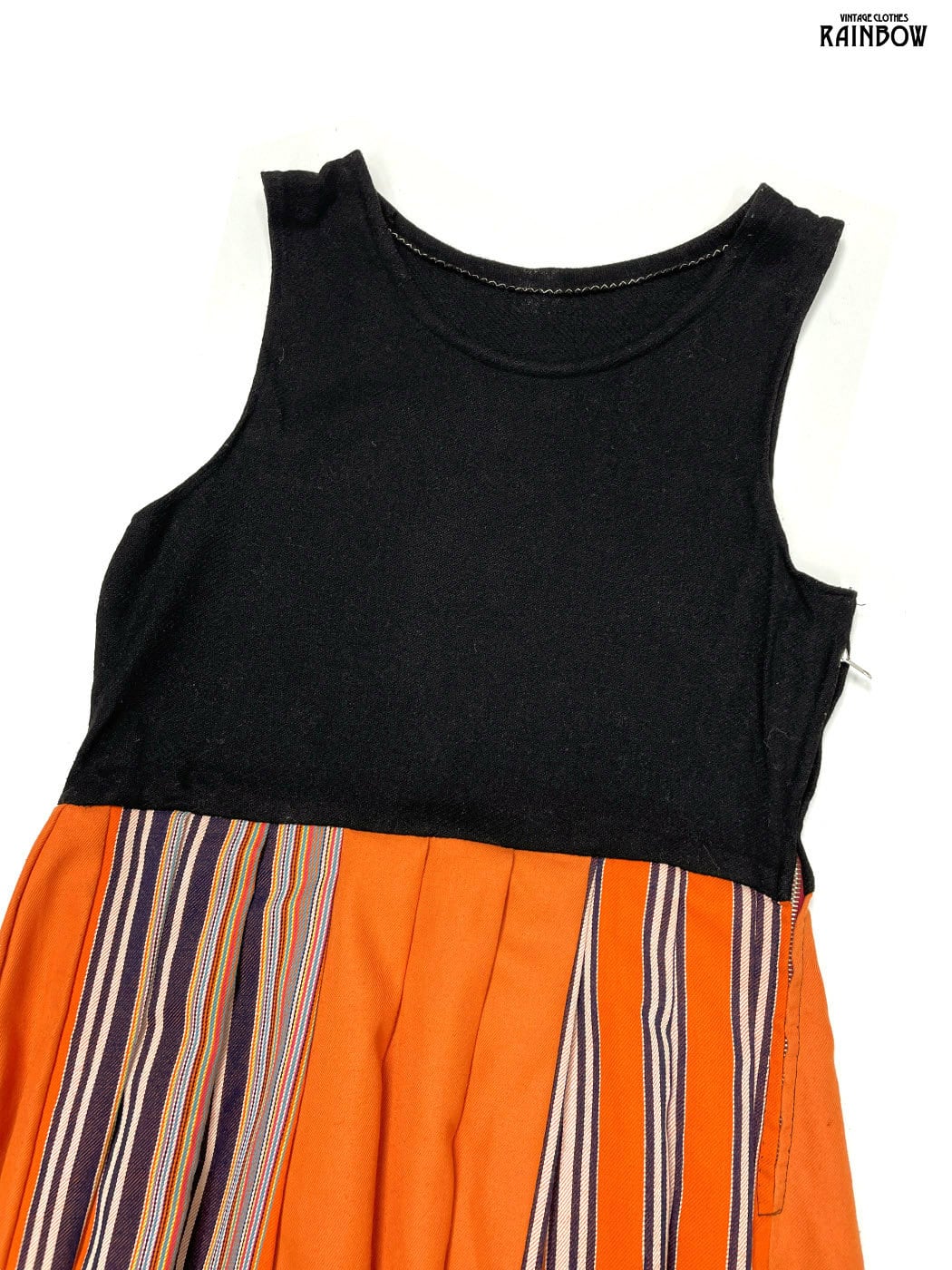 #ワンピース #ノースリーブ #ロング丈 #ウエスト切り替え #黒 #オレンジ #ストライプ柄 #コットン #ウール #ウールワンピース