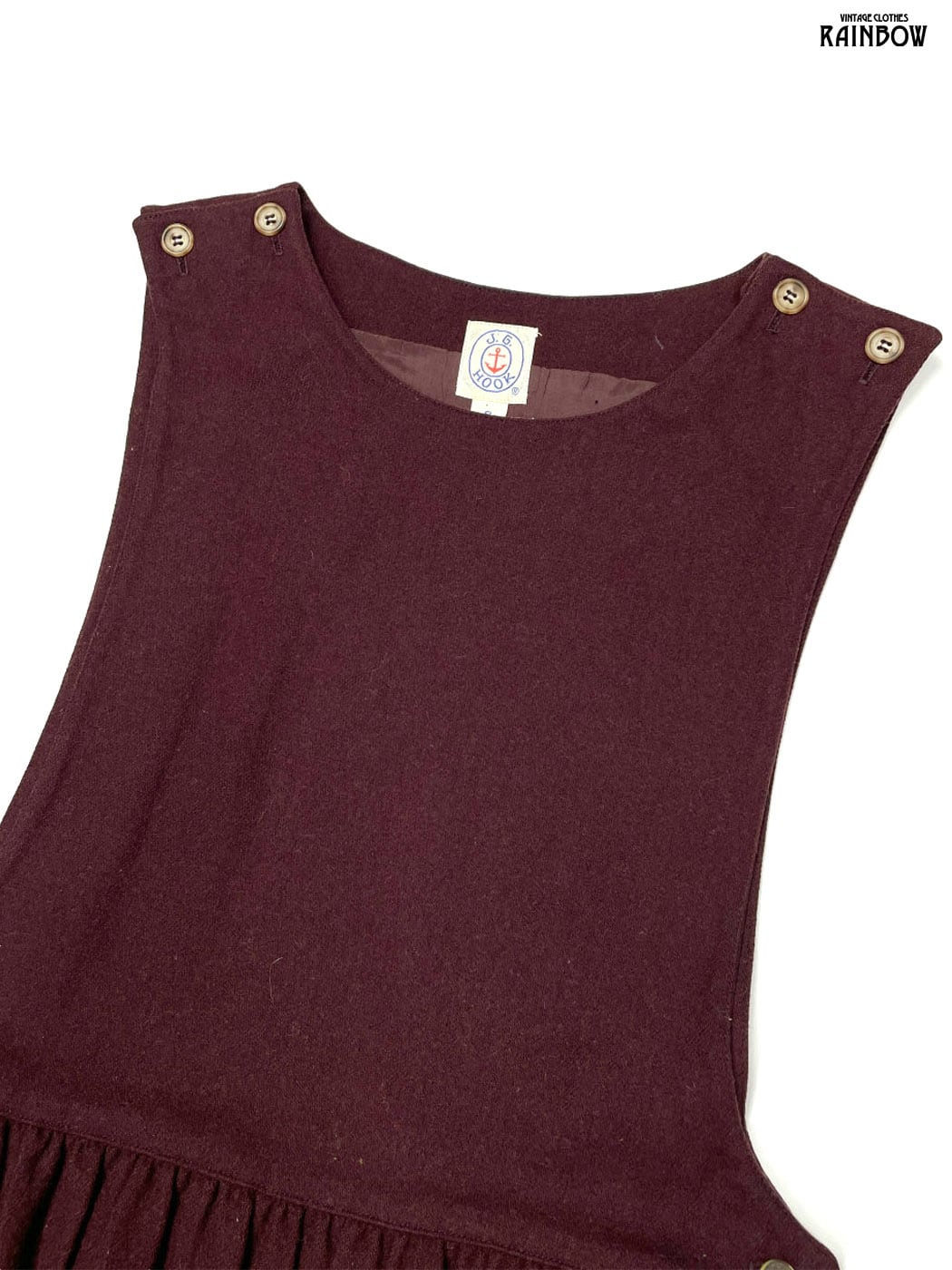 #ワンピース #ノースリーブ #ロング丈 #ウエスト切り替え #赤 #無地 #アメリカ製 #シンプル #ウール #ウールワンピース