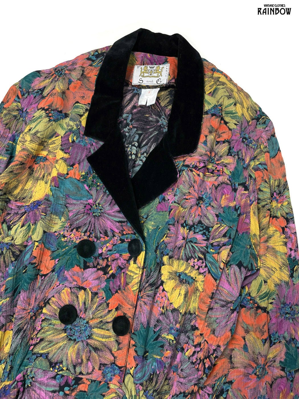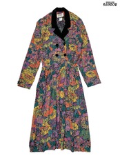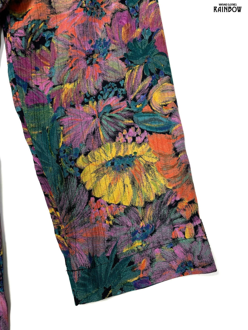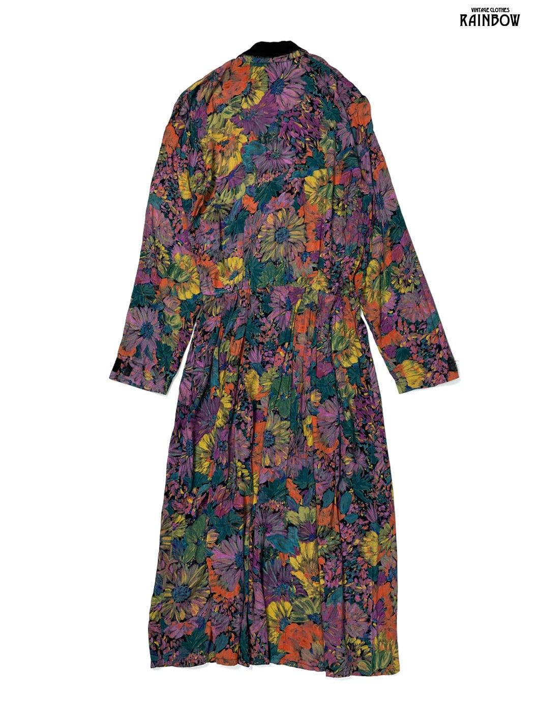 古着 シワ加工 花柄 ロング丈 長袖 ワンピース カラフル (otu2509027)
