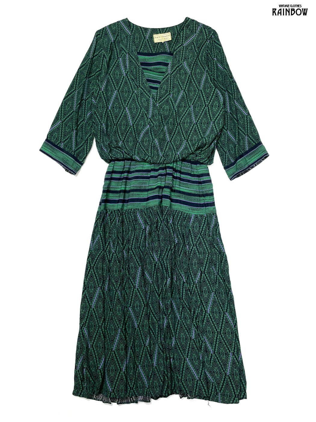 #ワンピース #ロングスリーブ #ロング丈 #ゴムウエスト #緑 #総柄 #アメリカ製 #クラシック #レーヨン #長袖総柄ワンピース