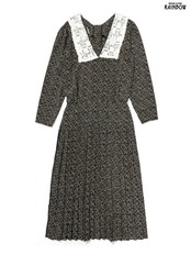 #ワンピース #ロングスリーブ #ロング丈 #黒 #総柄 #アメリカ製 #レース #クラシック #長袖総柄ワンピース