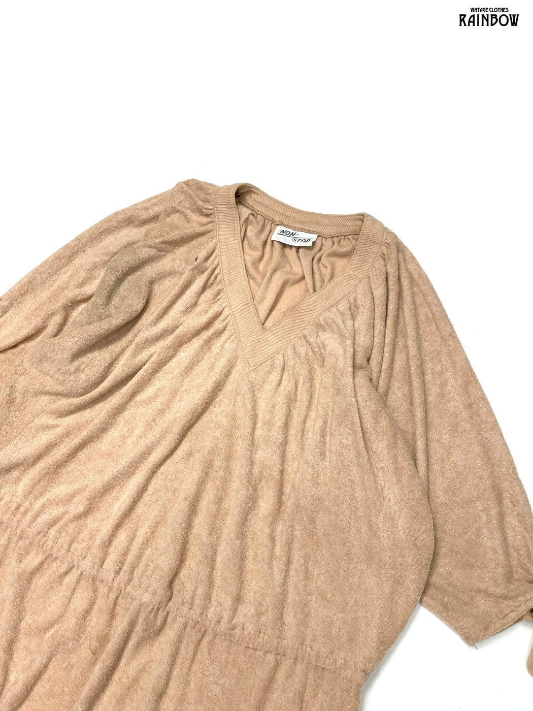 #ワンピース #ロングスリーブ #ロング丈 #オレンジ #ベージュ #無地 #アメリカ製 #レース #ドルマンスリーブ #ナチュラル #シンプル #長袖無地ワンピース