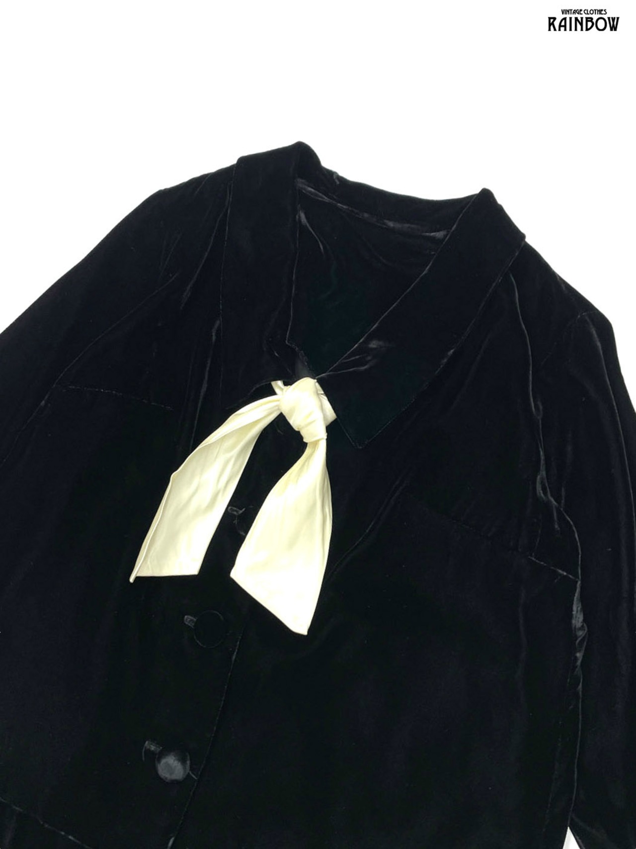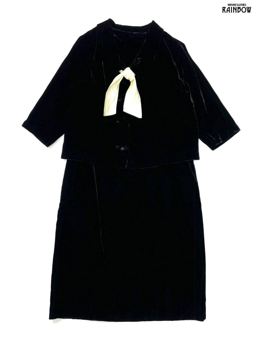 #ワンピース #セットアップ #ロングスリーブ #膝丈 #黒 #無地 #リボン #シック #ベロア #セットアップ