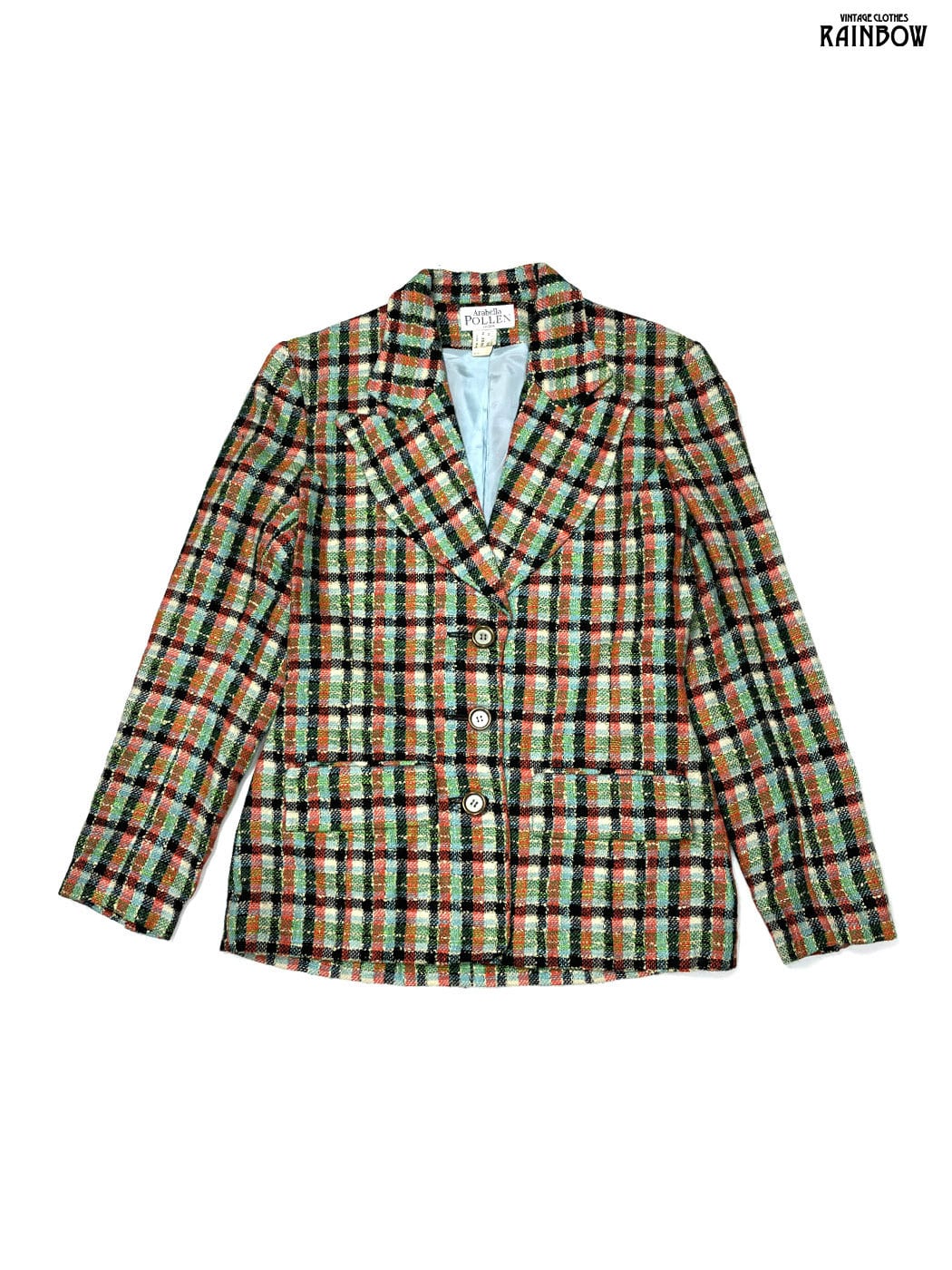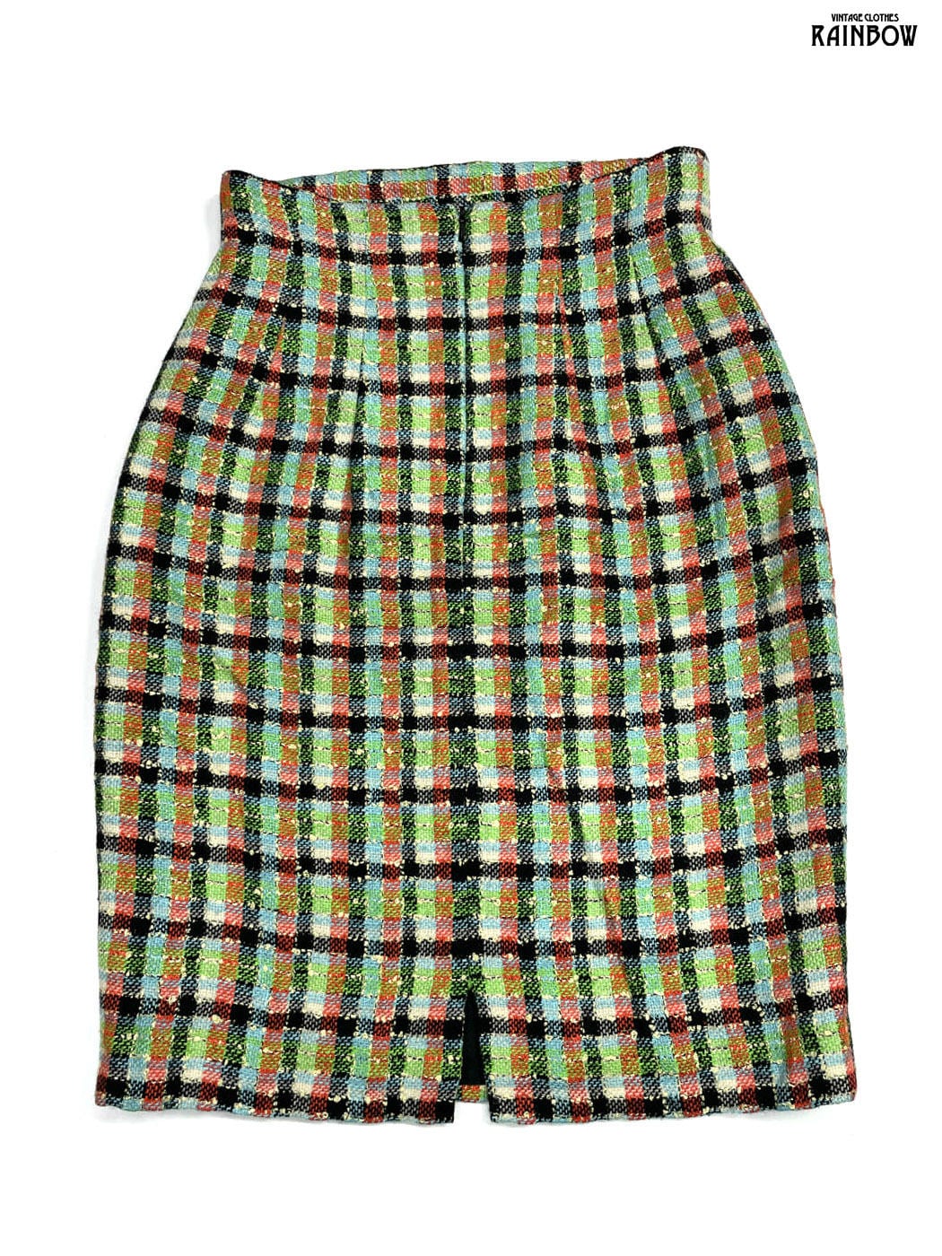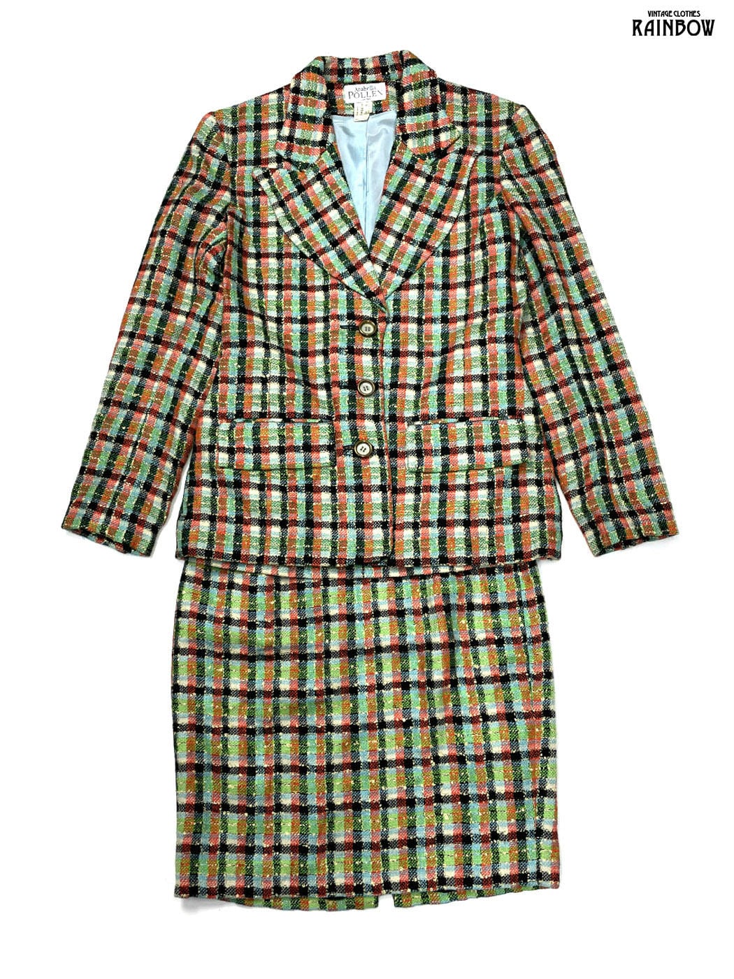 #ワンピース #セットアップ #ロングスリーブ #膝丈 #緑 #チェック柄 #イングランド製 #シック #シルク #ウール #セットアップ