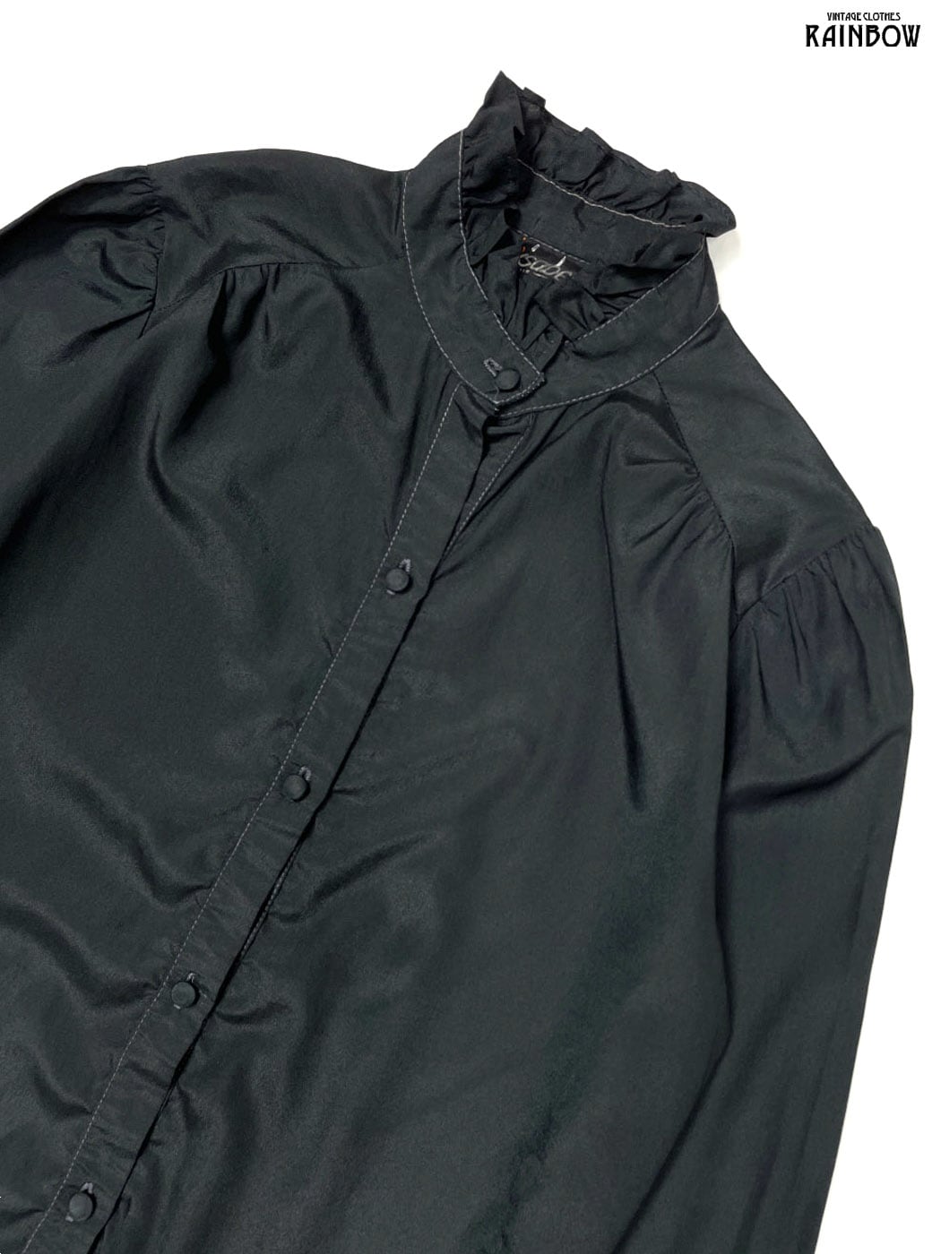 #ブラウス #bブラウス #ロングスリーブ #黒 #無地 #フリル #前開き #ハイネック #ヴィンテージ #ヴィンテージシャツ