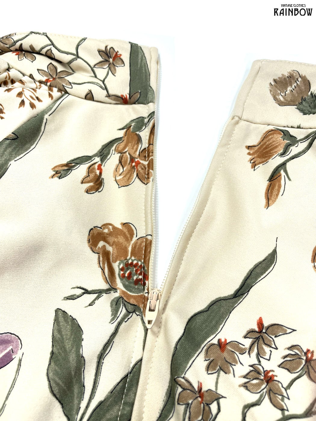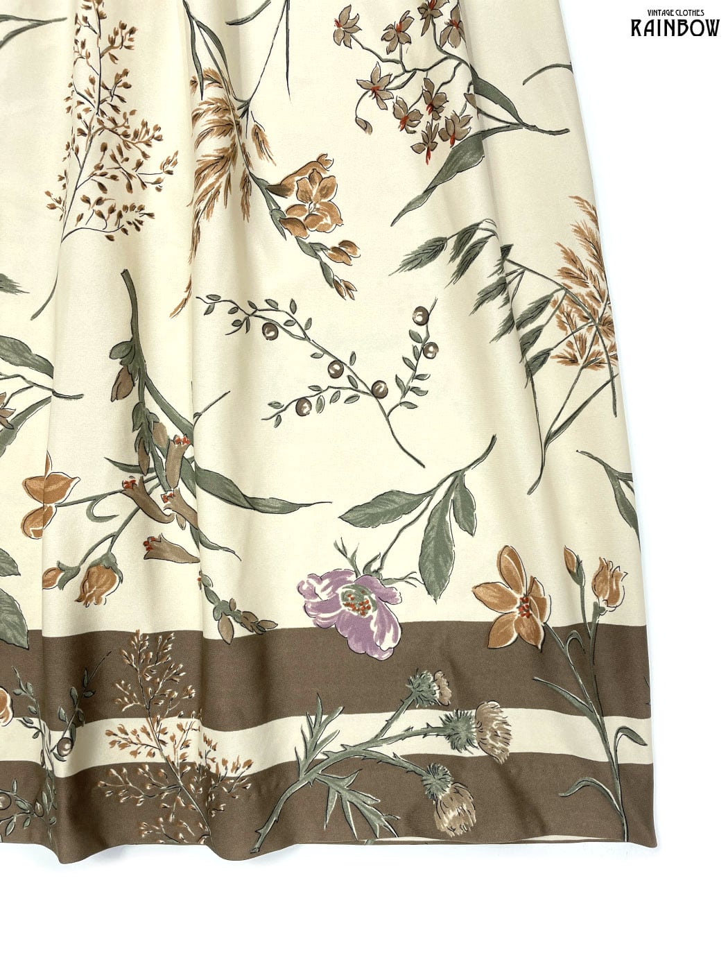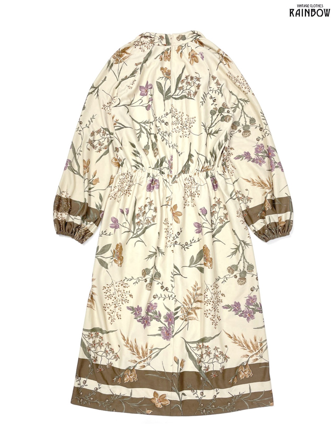 #ワンピース #ロングスリーブ #ロング丈 #フレア #ゴムウエスト #ウエスト切り替え #ベージュ #花柄 #TALONジップ #ガーリー #長袖花柄ワンピース