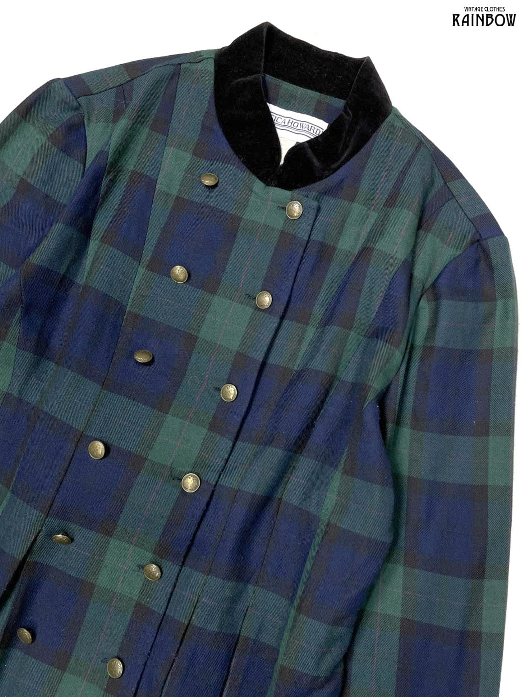 #ワンピース #ロングスリーブ #ロング丈 #プリーツ #ストレート #緑 #チェック柄 #前開き #ハイネック #クラシック #コットン #長袖チェック柄ワンピース