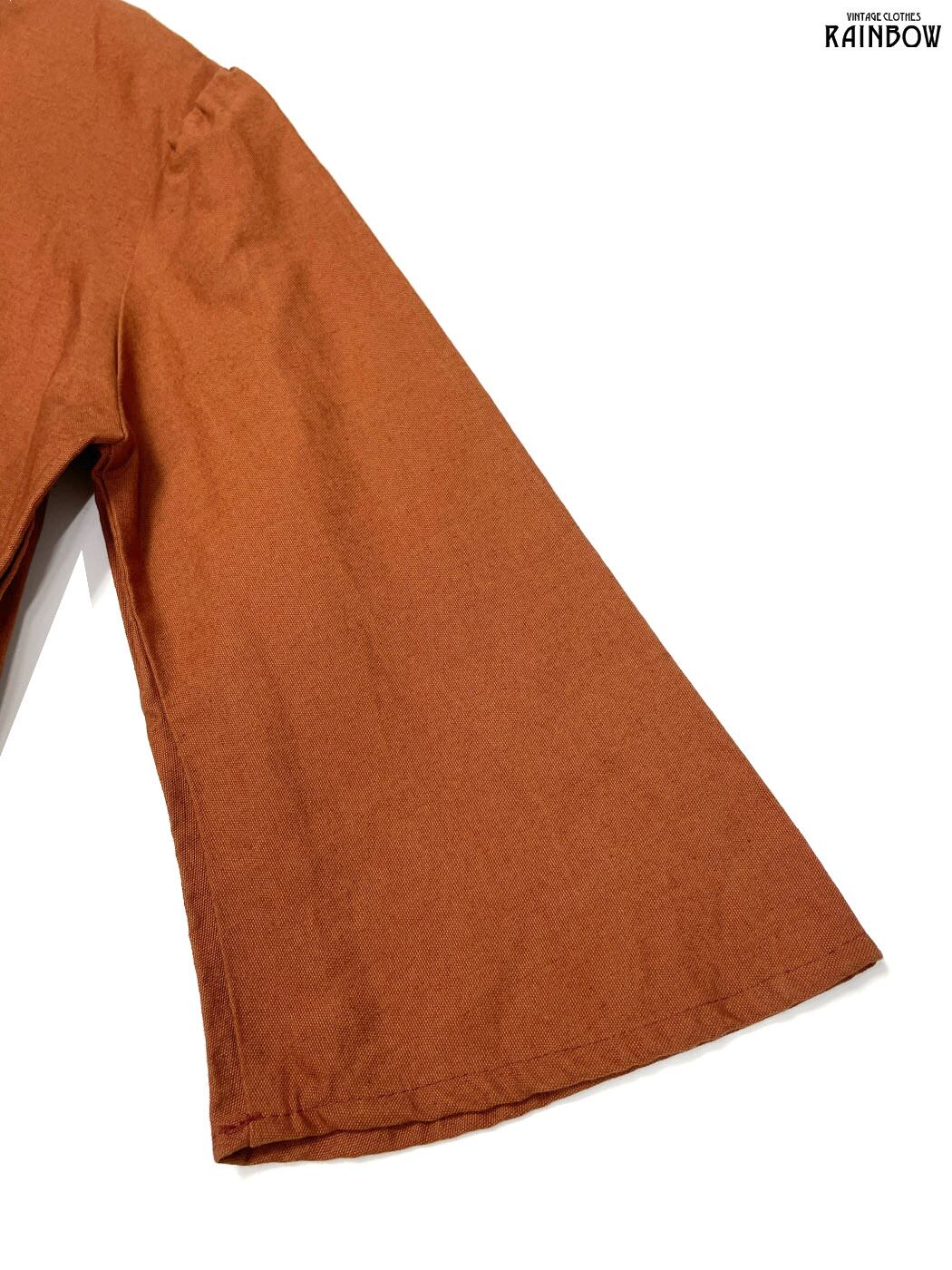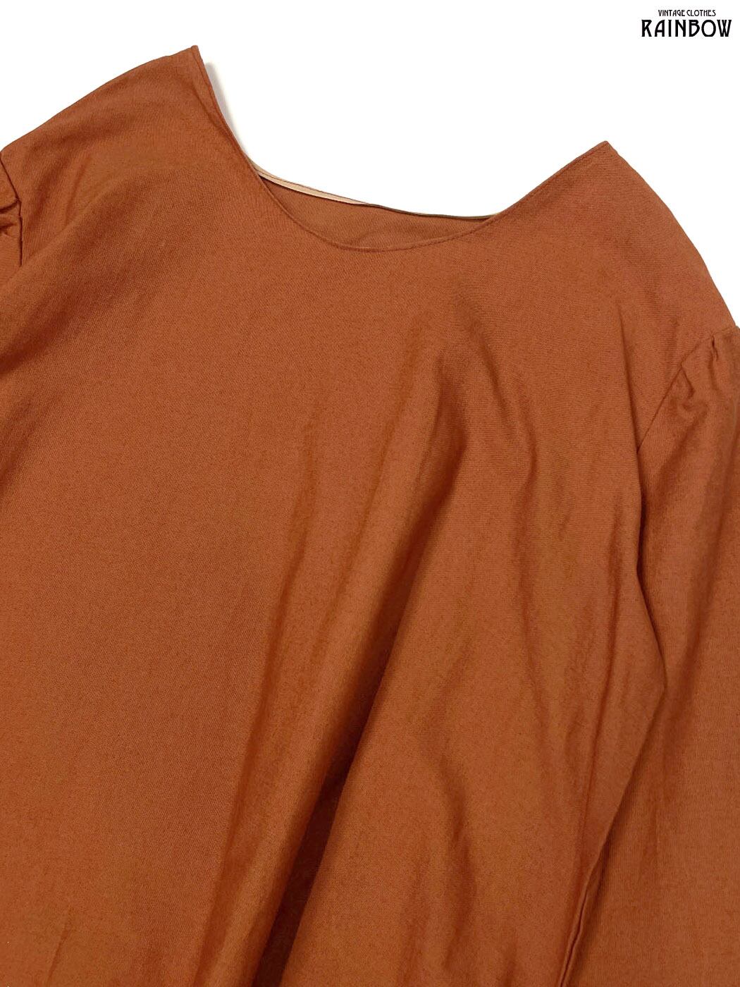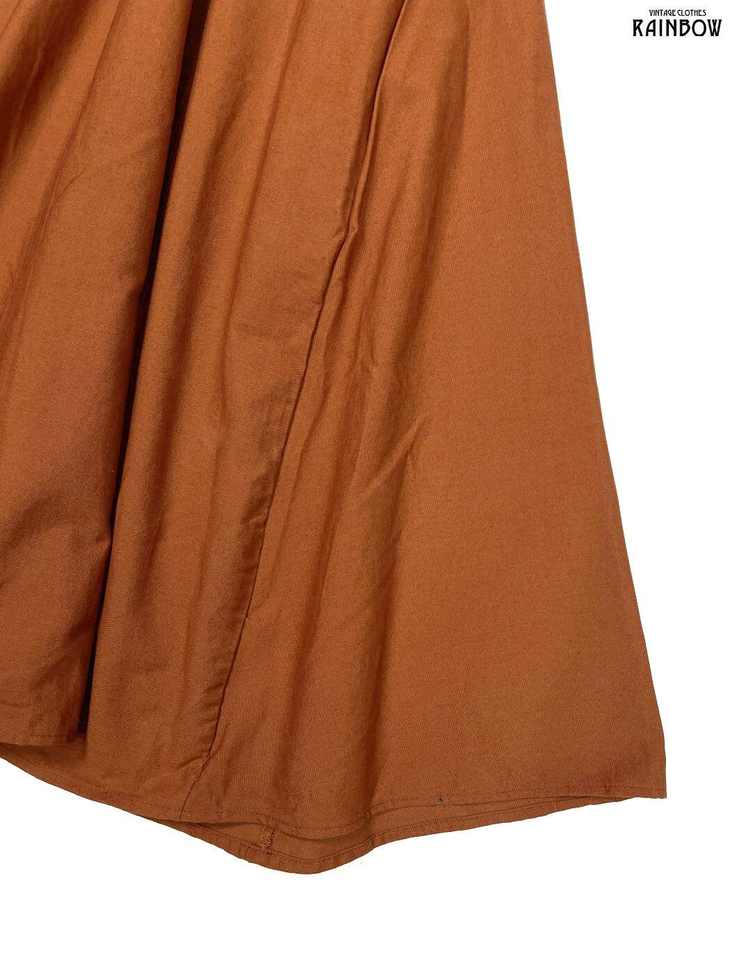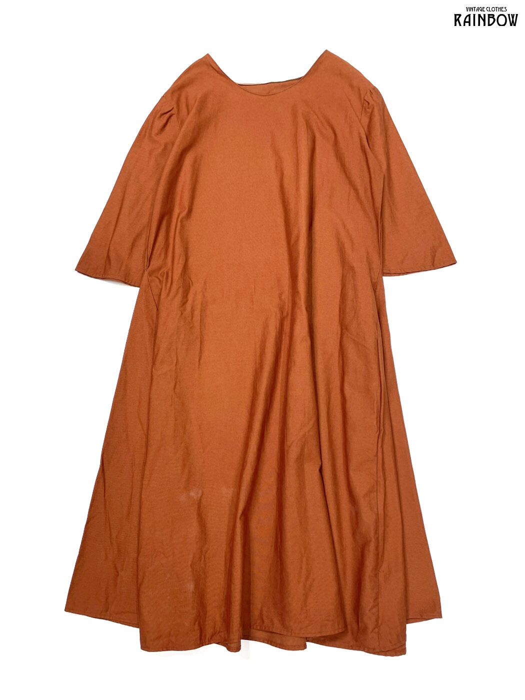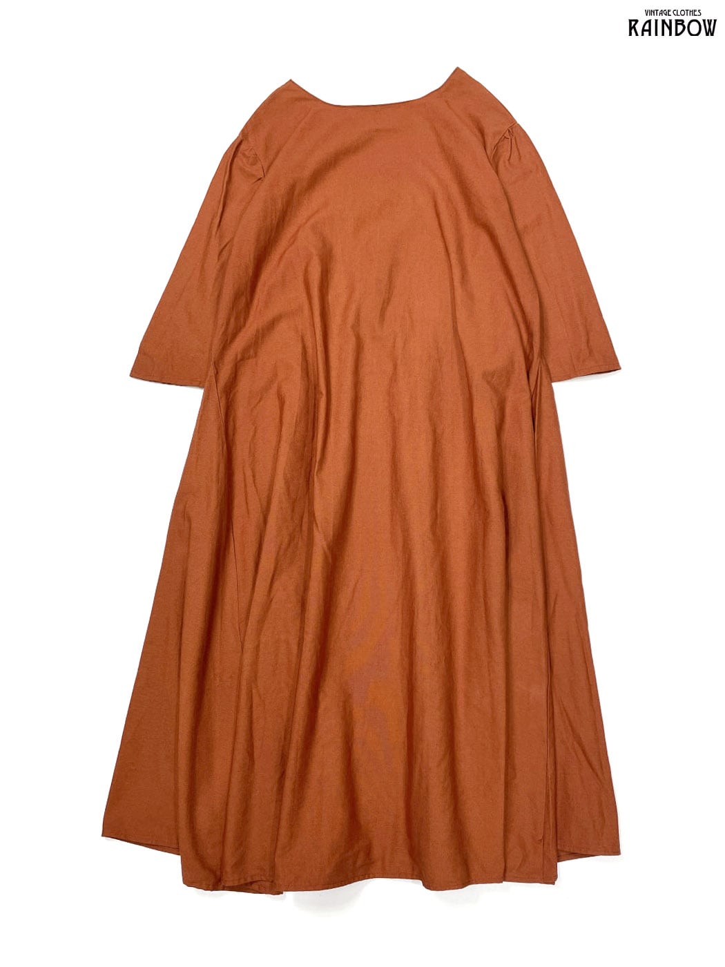#ワンピース #ロングスリーブ #ロング丈 #フレア #茶 #オレンジ #無地 #ナチュラル #シンプル #コットン #長袖無地ワンピース
