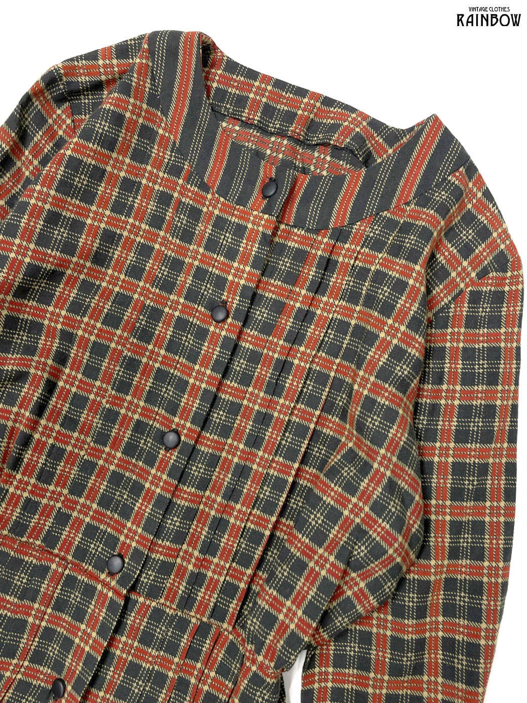 #ワンピース #ロングスリーブ #ロング丈 #フレア #プリーツ #ウエスト切り替え #黒 #赤 #チェック柄 #クラシック #コットン #長袖チェック柄ワンピース