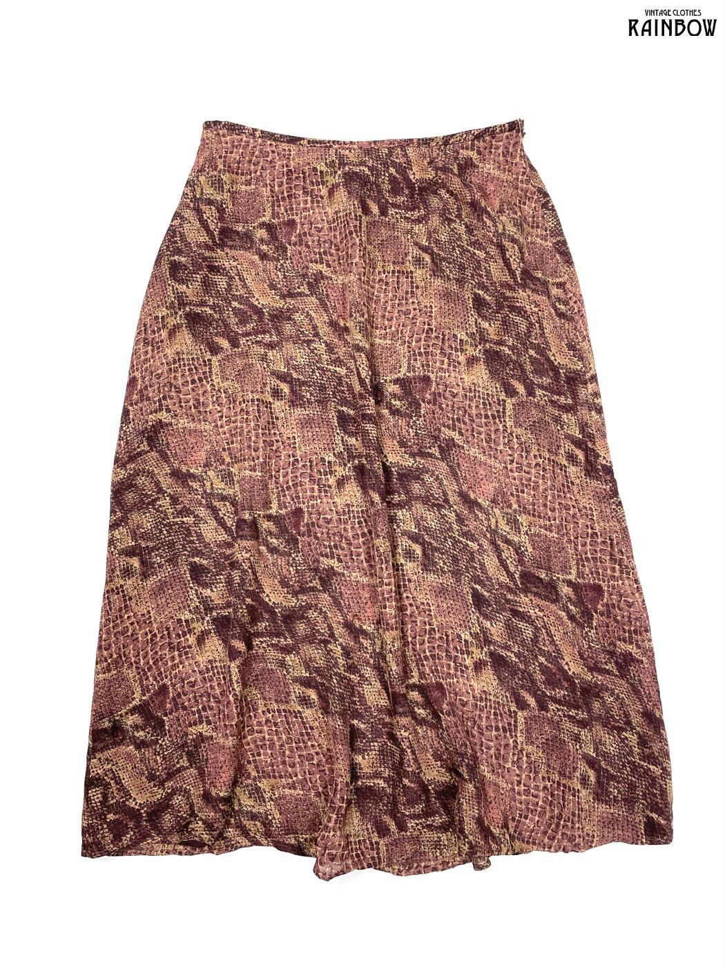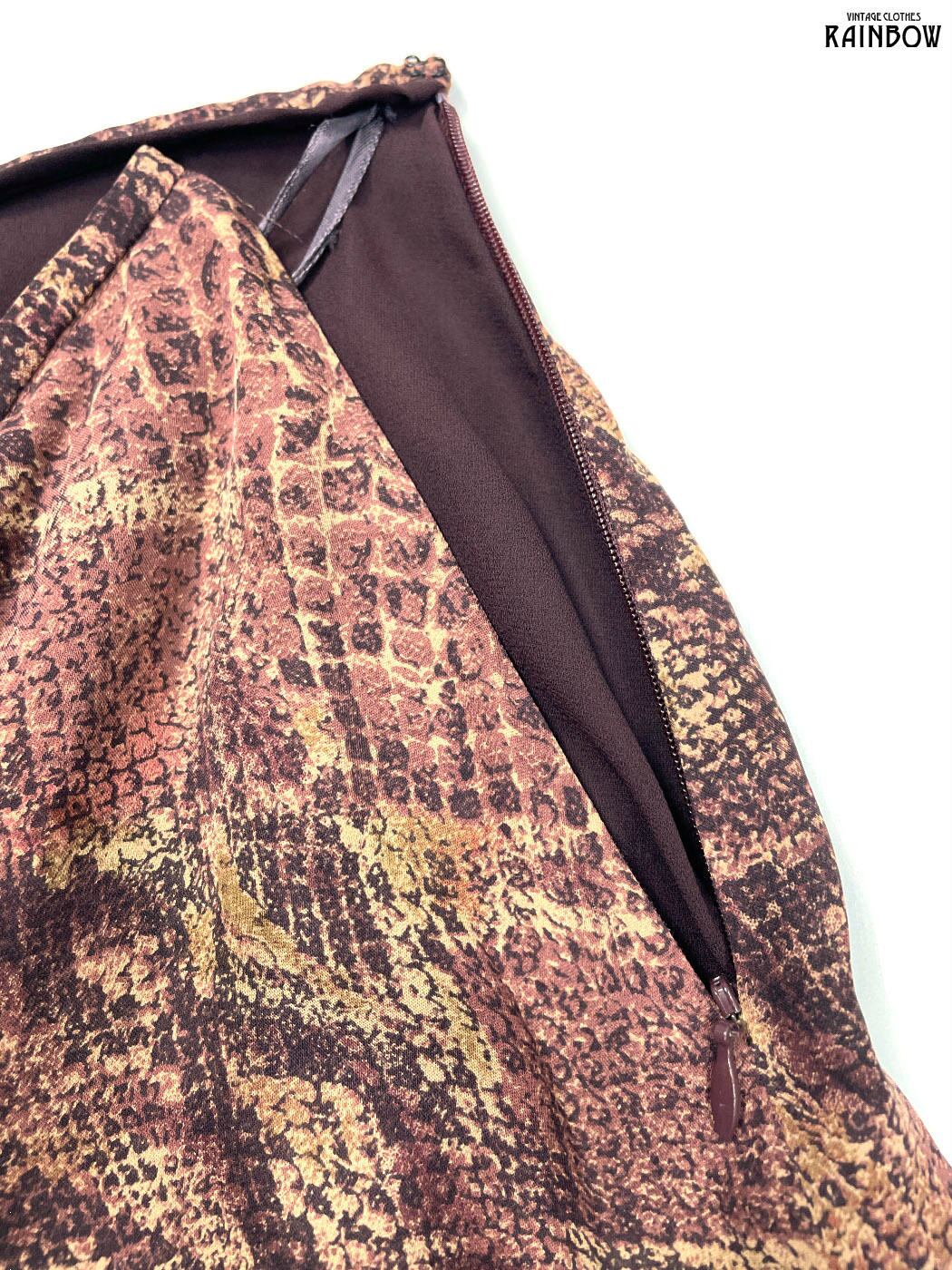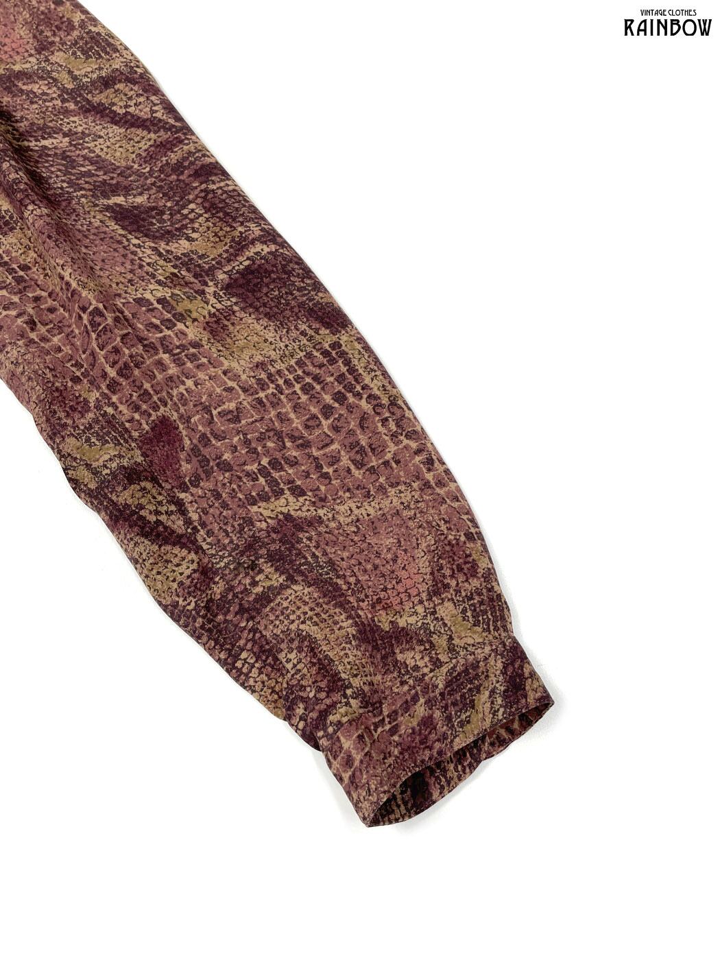 #ワンピース #セットアップ #ロングスリーブ #ロング丈 #フレア #茶 #総柄 #シェルボタン #前開き #ヴィンテージ #シルク #セットアップ