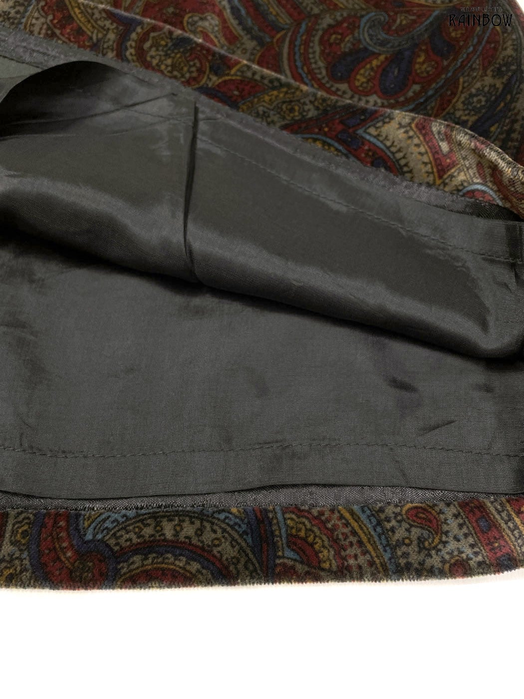#スカート #ミニ丈 #タイト #茶 #ボルドー #総柄 #ペイズリー柄 #アメリカ製 #クラシック #ベロア #ベロアスカート