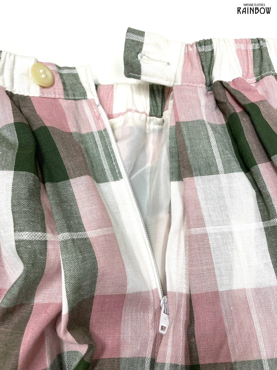 #スカート #ロング丈 #フレア #ゴムウエスト #白 #ピンク #緑 #チェック柄 #フリル #レース #ガーリー #コットン #柄スカート
