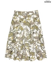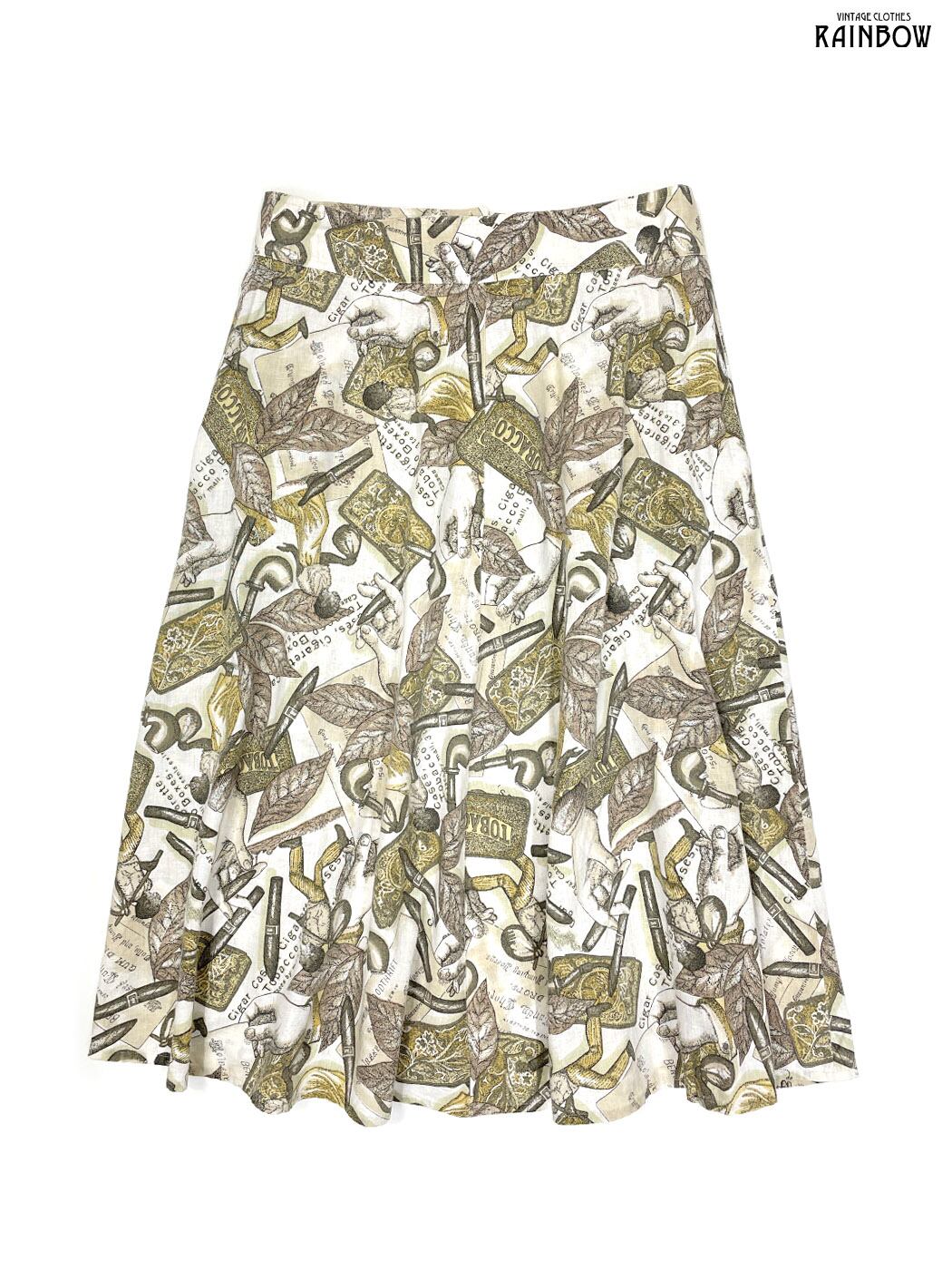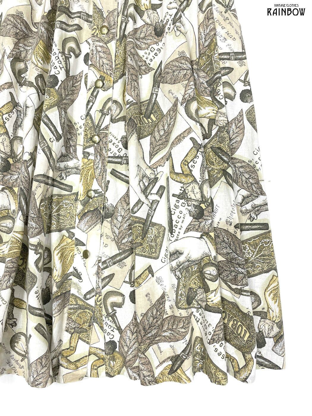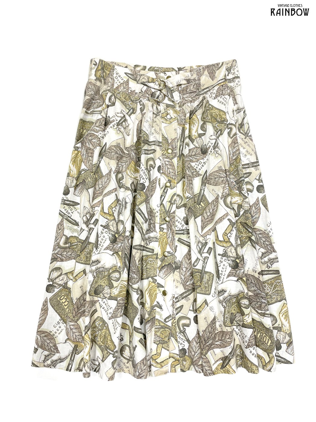 #スカート #膝丈 #フレア #ベージュ #カーキ #総柄 #前開き #ガーリー #コットン #柄スカート