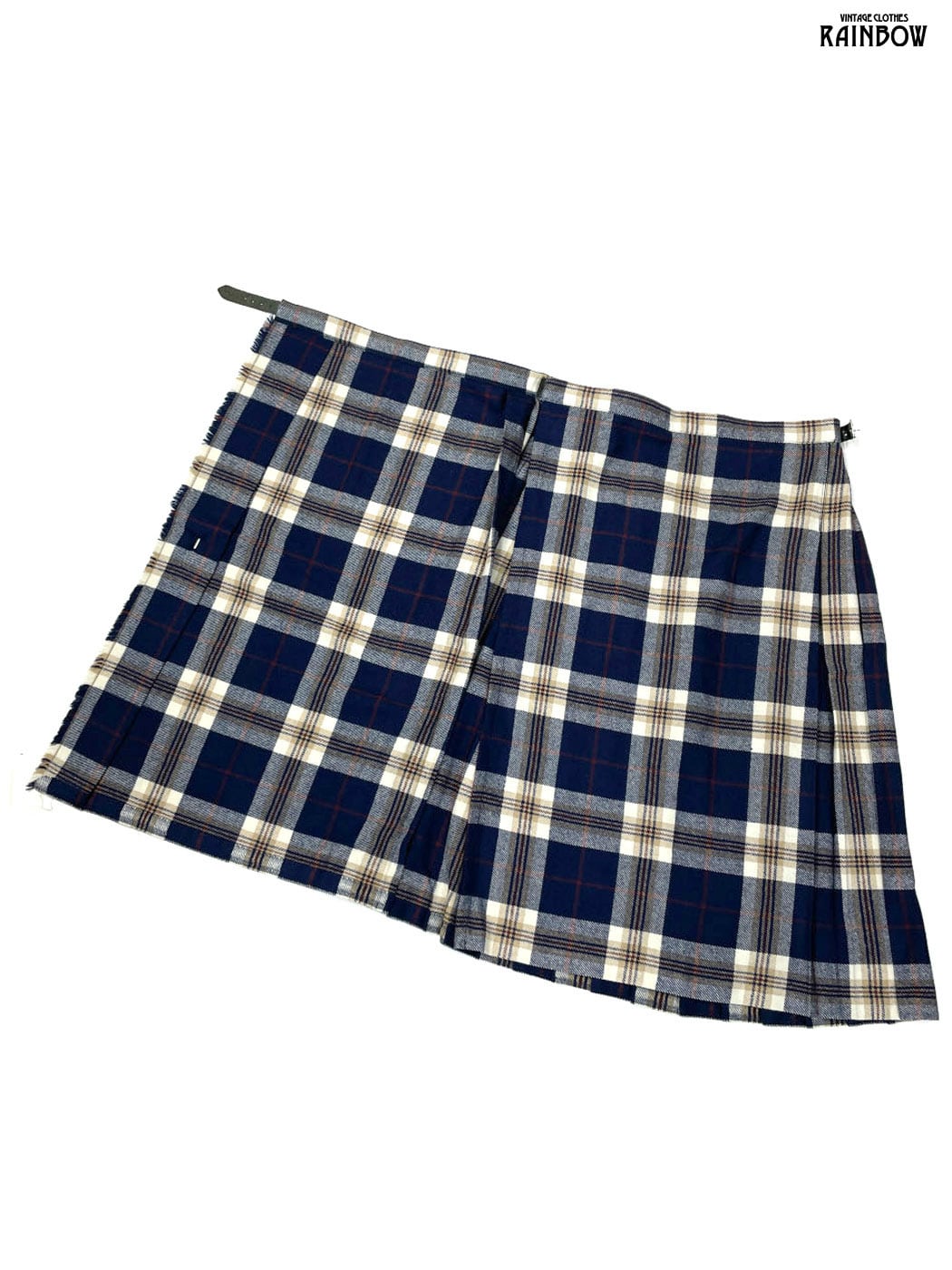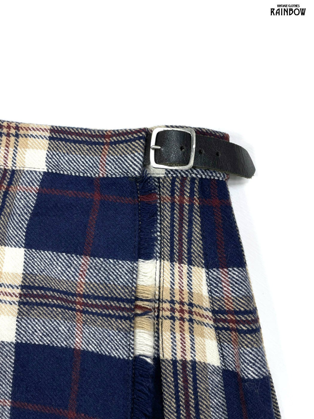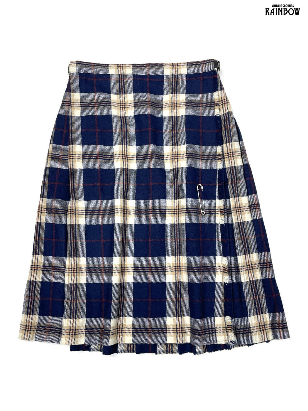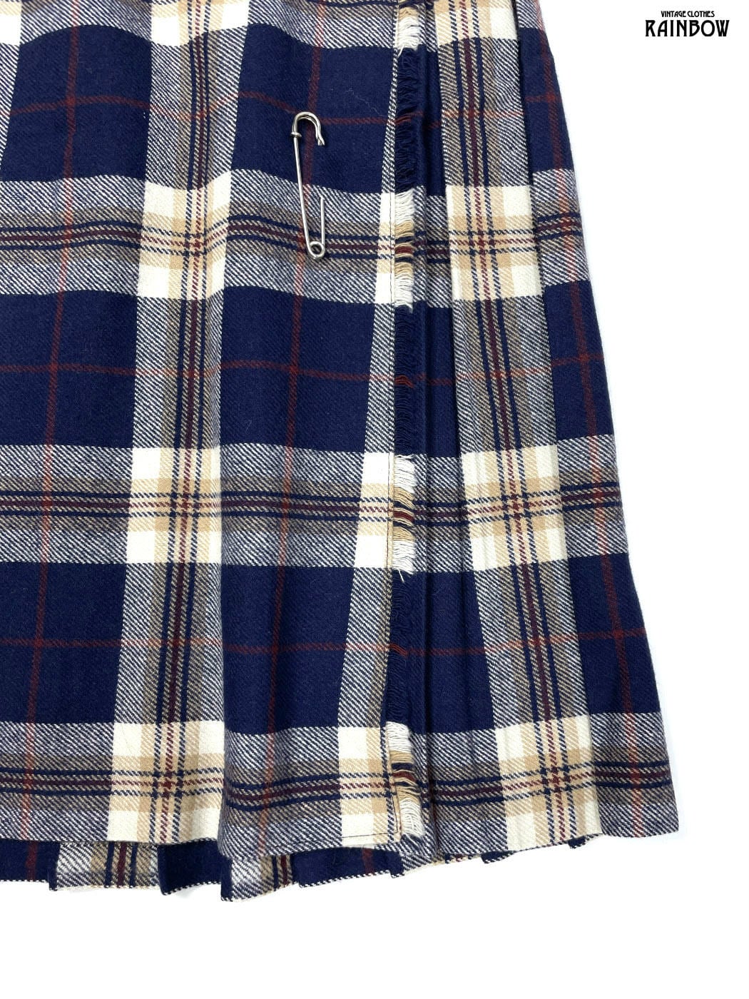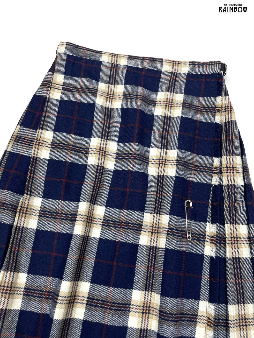 #スカート #膝丈 #紺 #チェック柄 #巻きデザイン #ウール #ピュアウール #秋冬チェック柄スカート