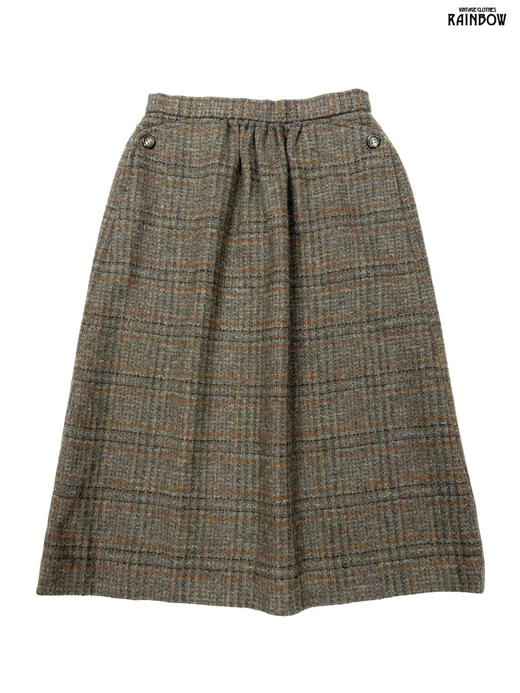#スカート #膝丈 #茶 #チェック柄 #ウール #秋冬チェック柄スカート