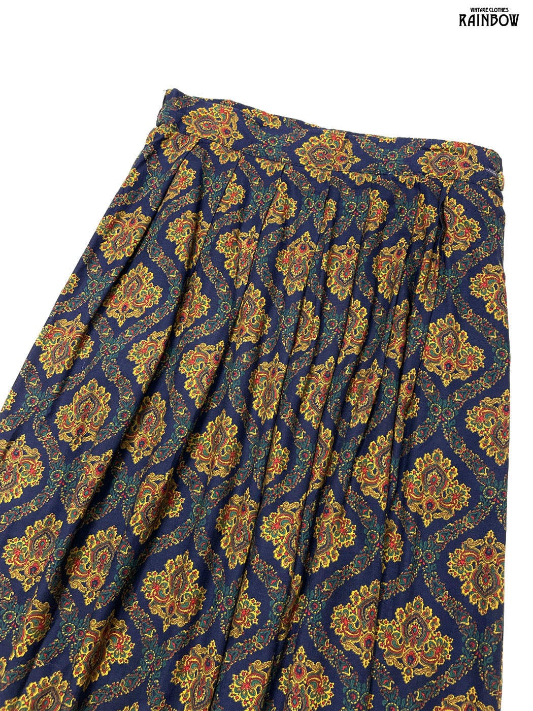 #スカート #ロング丈 #紺 #総柄 #アメリカ製 #クラシック #レーヨン #秋冬柄スカート