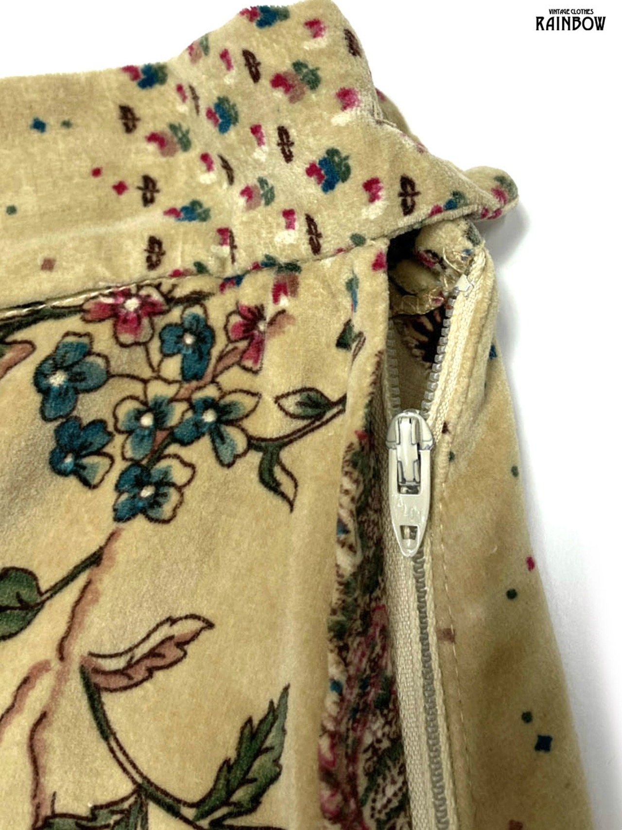 #スカート #ロング丈 #ベージュ #花柄 #ガーリー #コットン #ベロア #ベロアスカート #TALONジップ