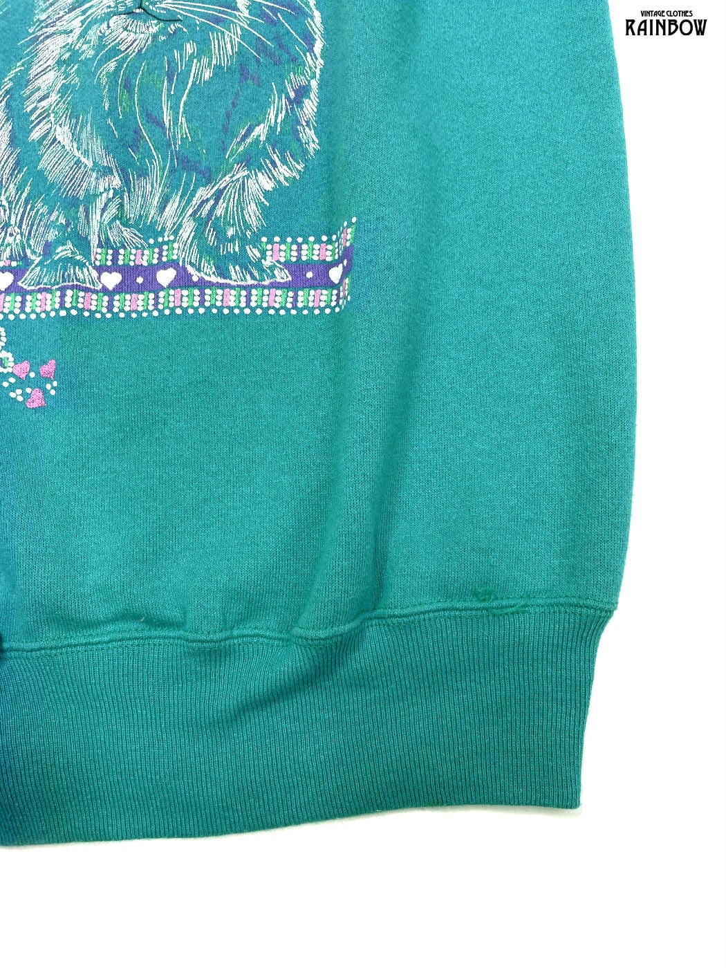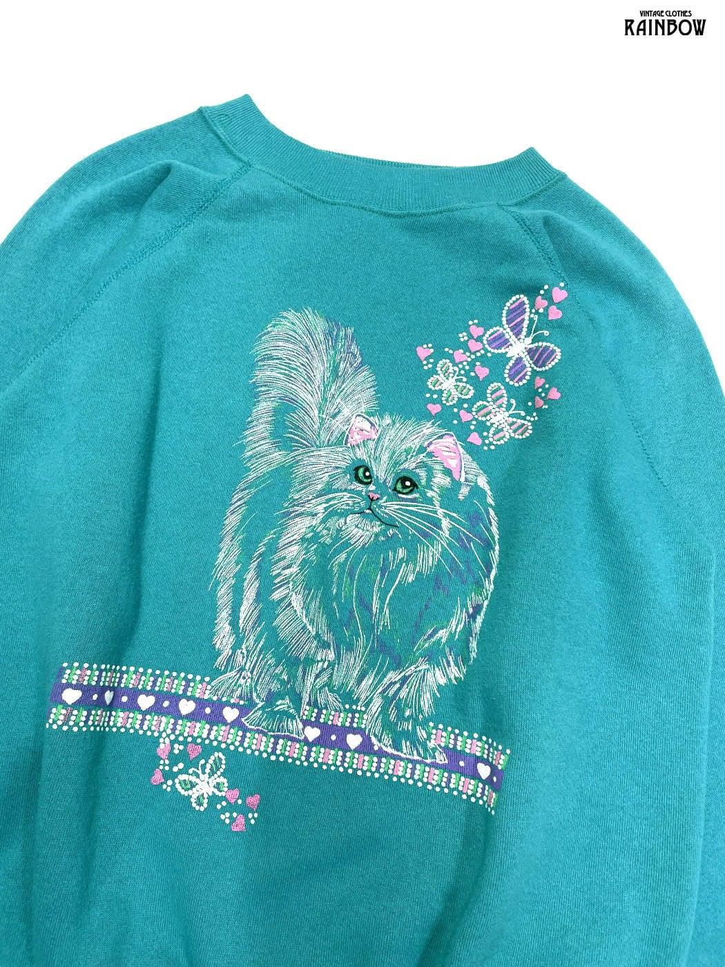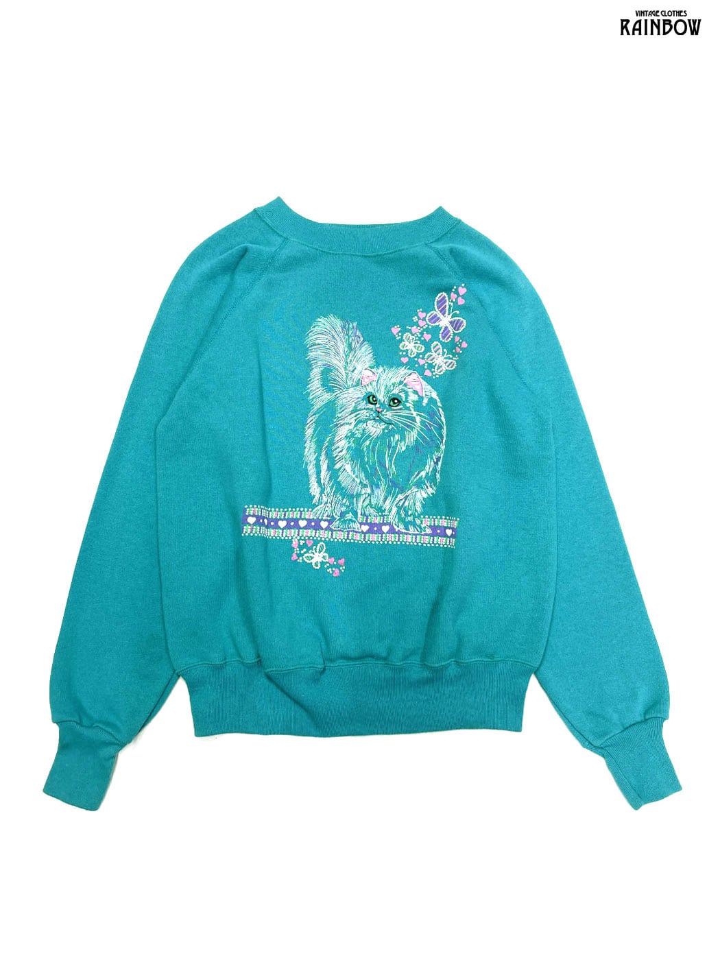 #トップス #スウェット #トレーナー #ロングスリーブ #水色 #プリントデザイン #アニマル ネコ #アメリカ製 #スウェット地 #プリントスウェット