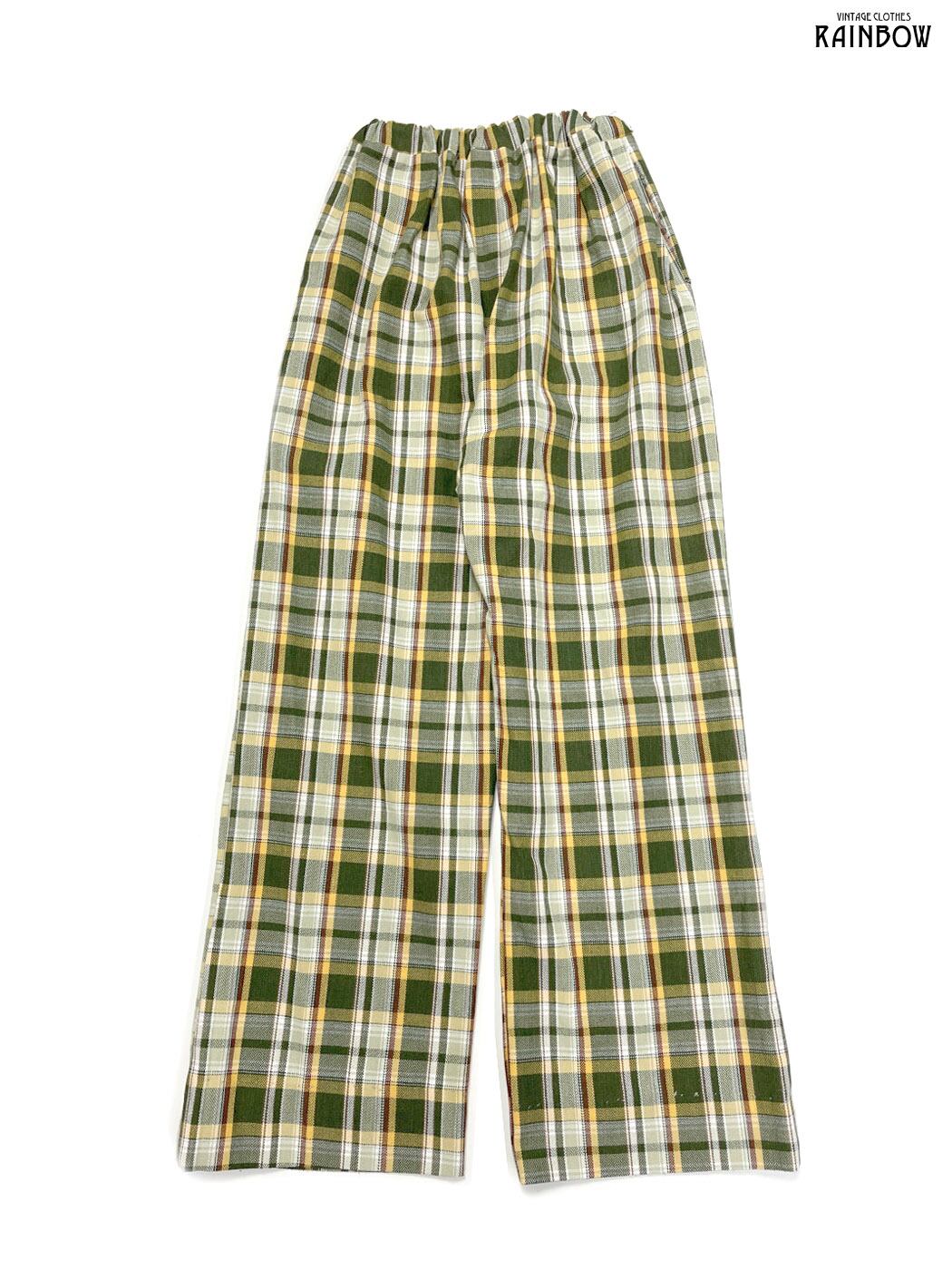 #パンツ #ロング丈 #緑 #マスタード #チェック柄 #ガーリー #コットン #柄パンツ