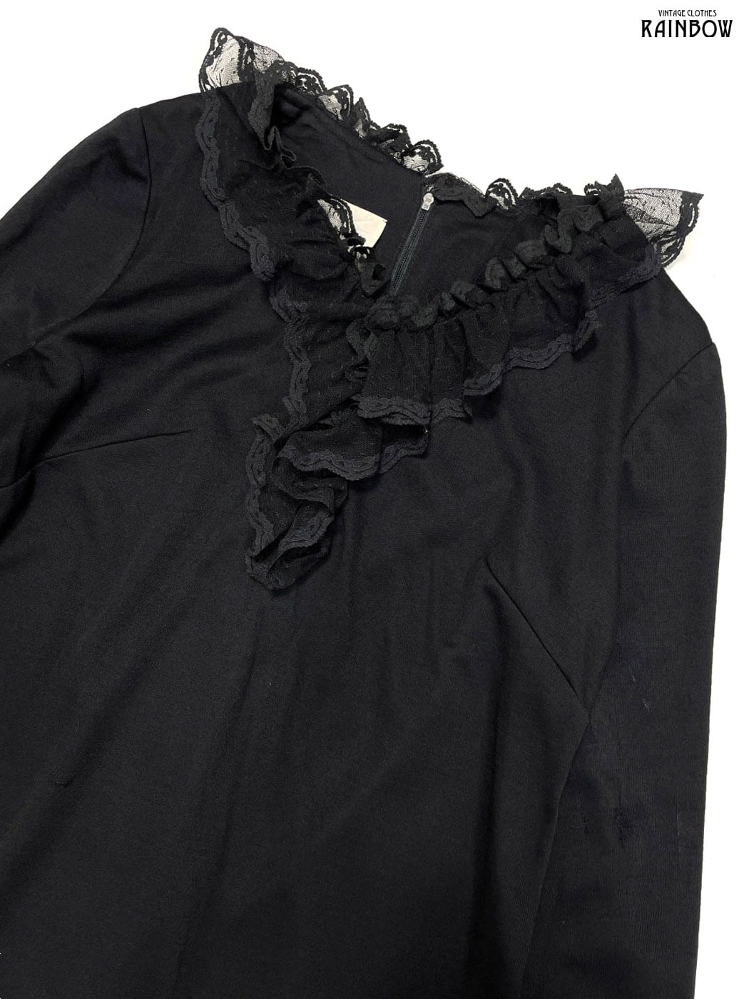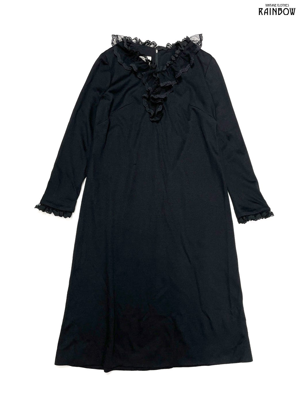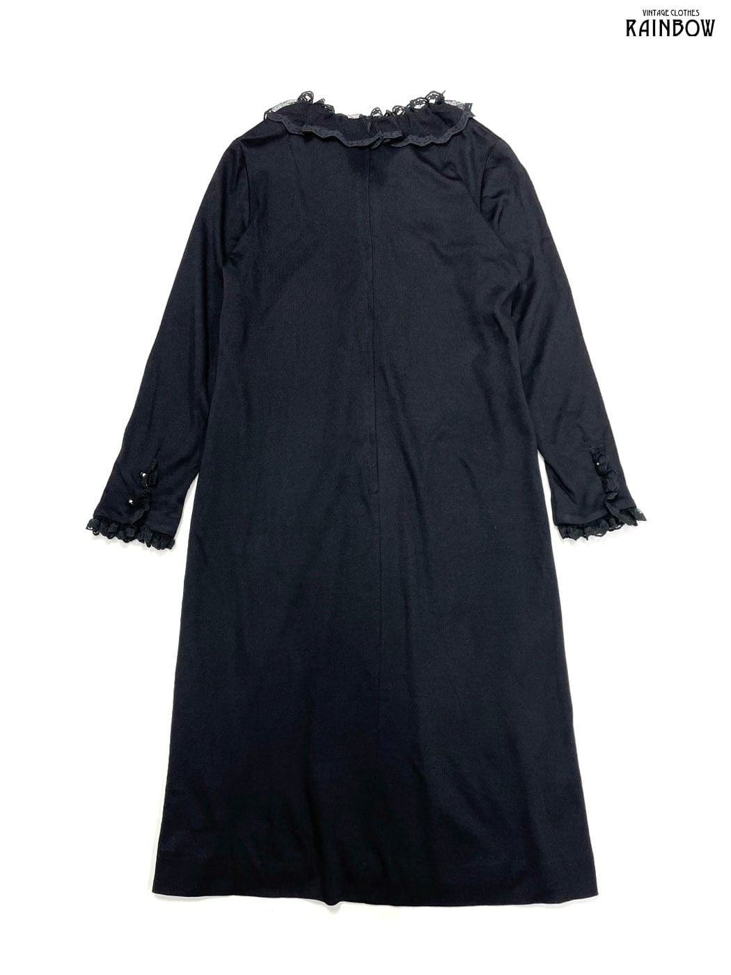 #ワンピース #ロングスリーブ #ロング丈 #Aライン #黒 #無地 #レース #ビジュー #ユニオンメイド #シンプル #シック #ブラックワンピース