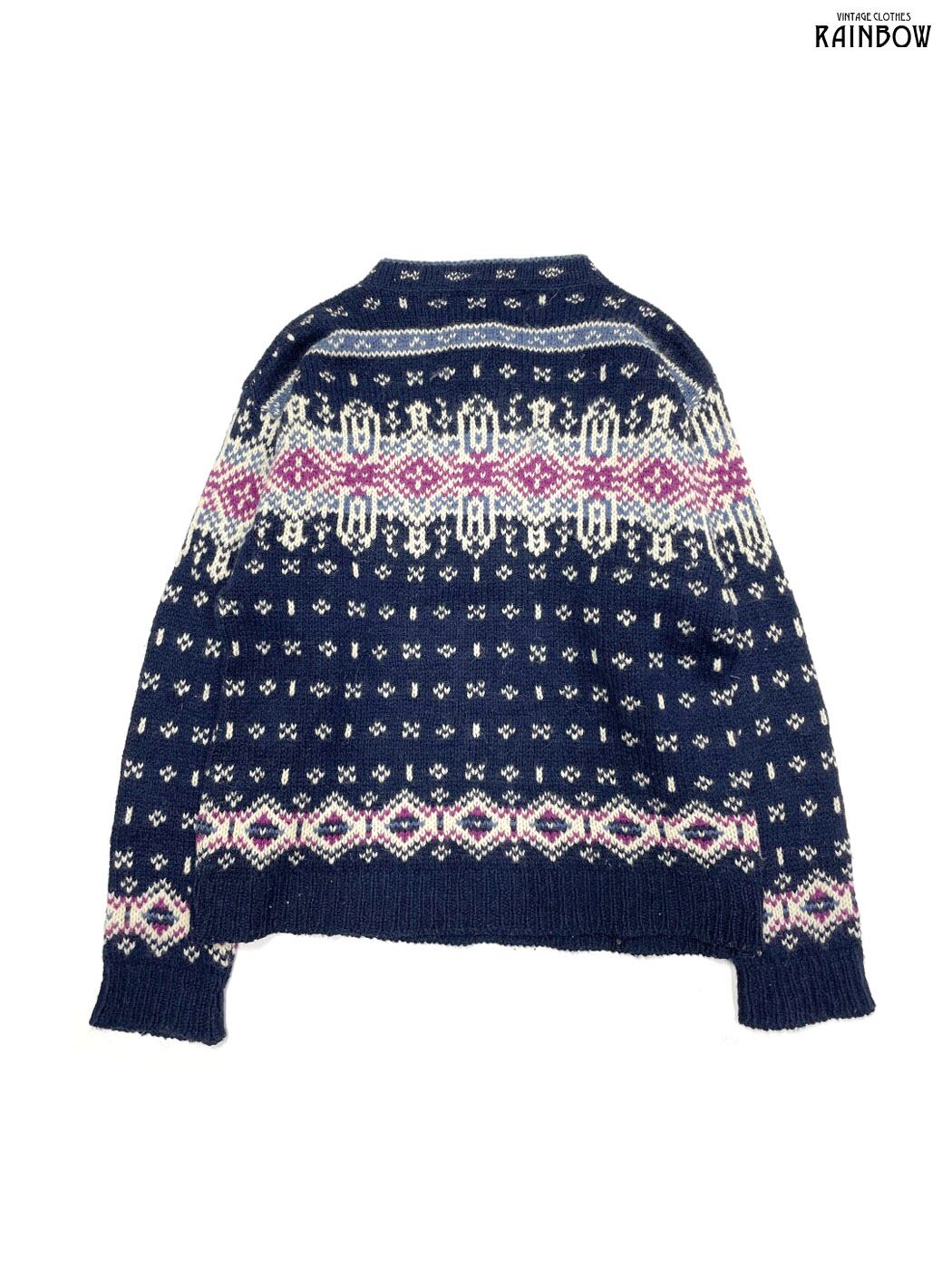 #ニット #セーター #ロングスリーブ #紫 #紺 #総柄 #ノルディック柄 #アメリカ製 #ヴィンテージ #ウール #ノルディック柄ニット