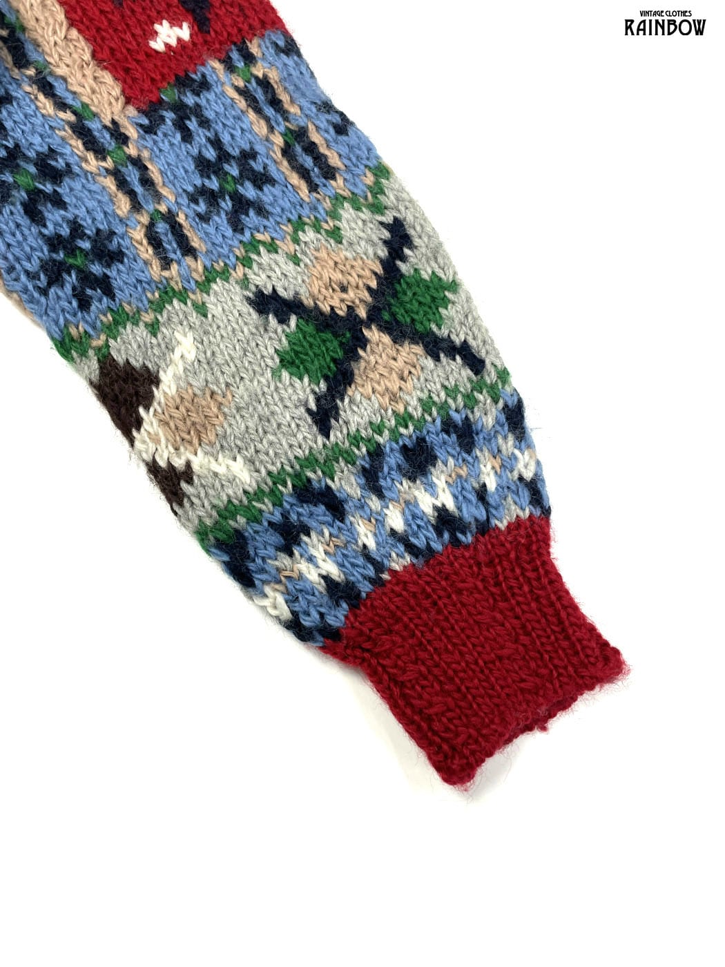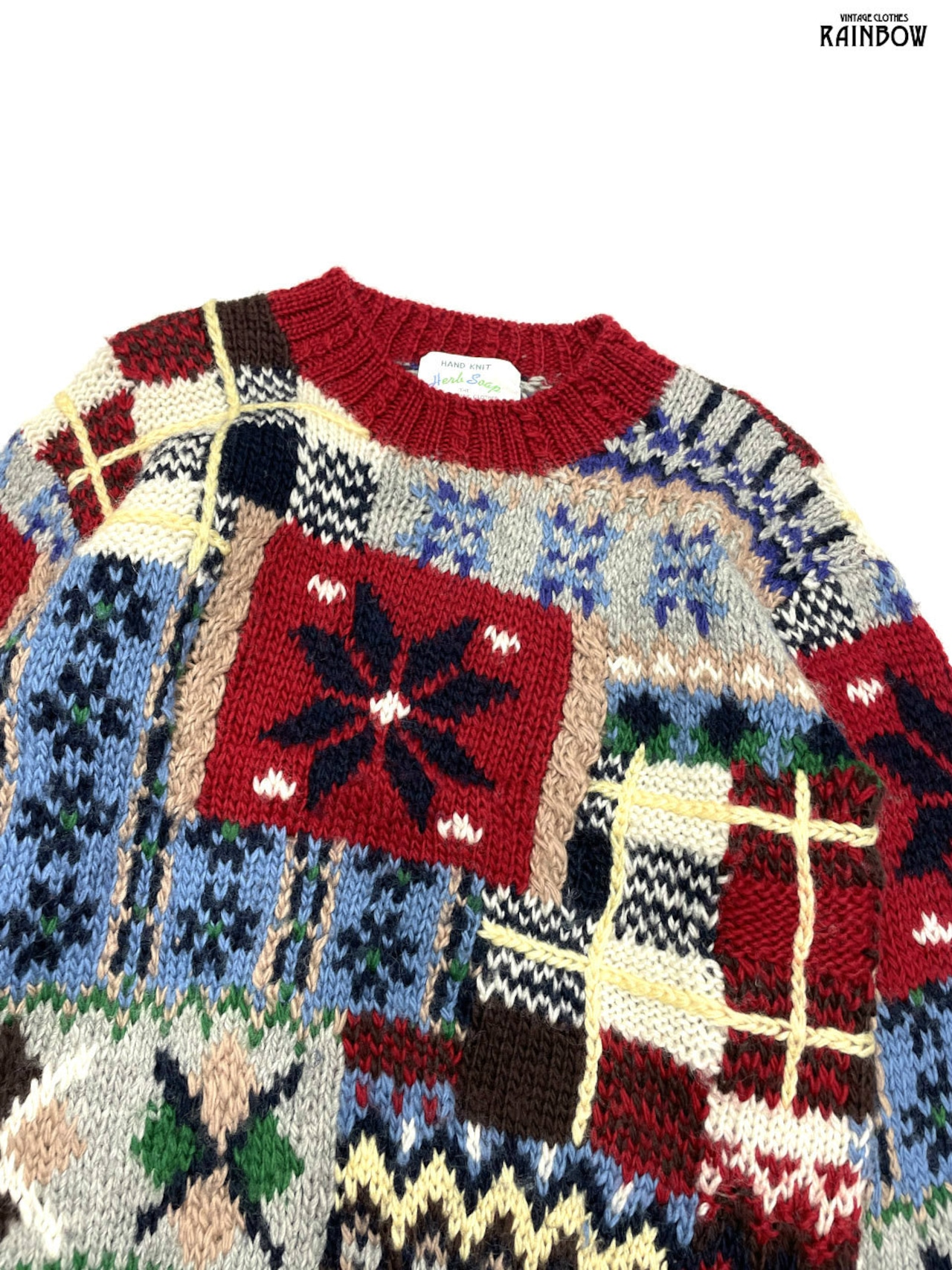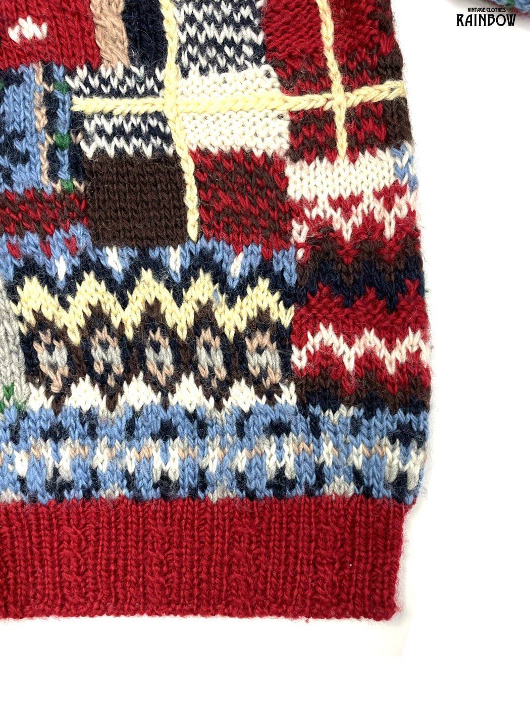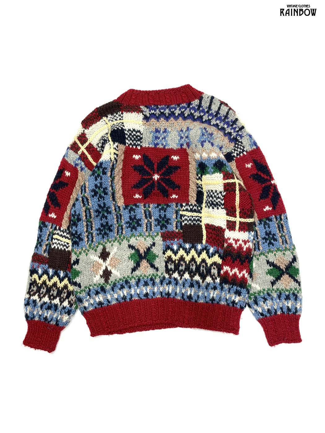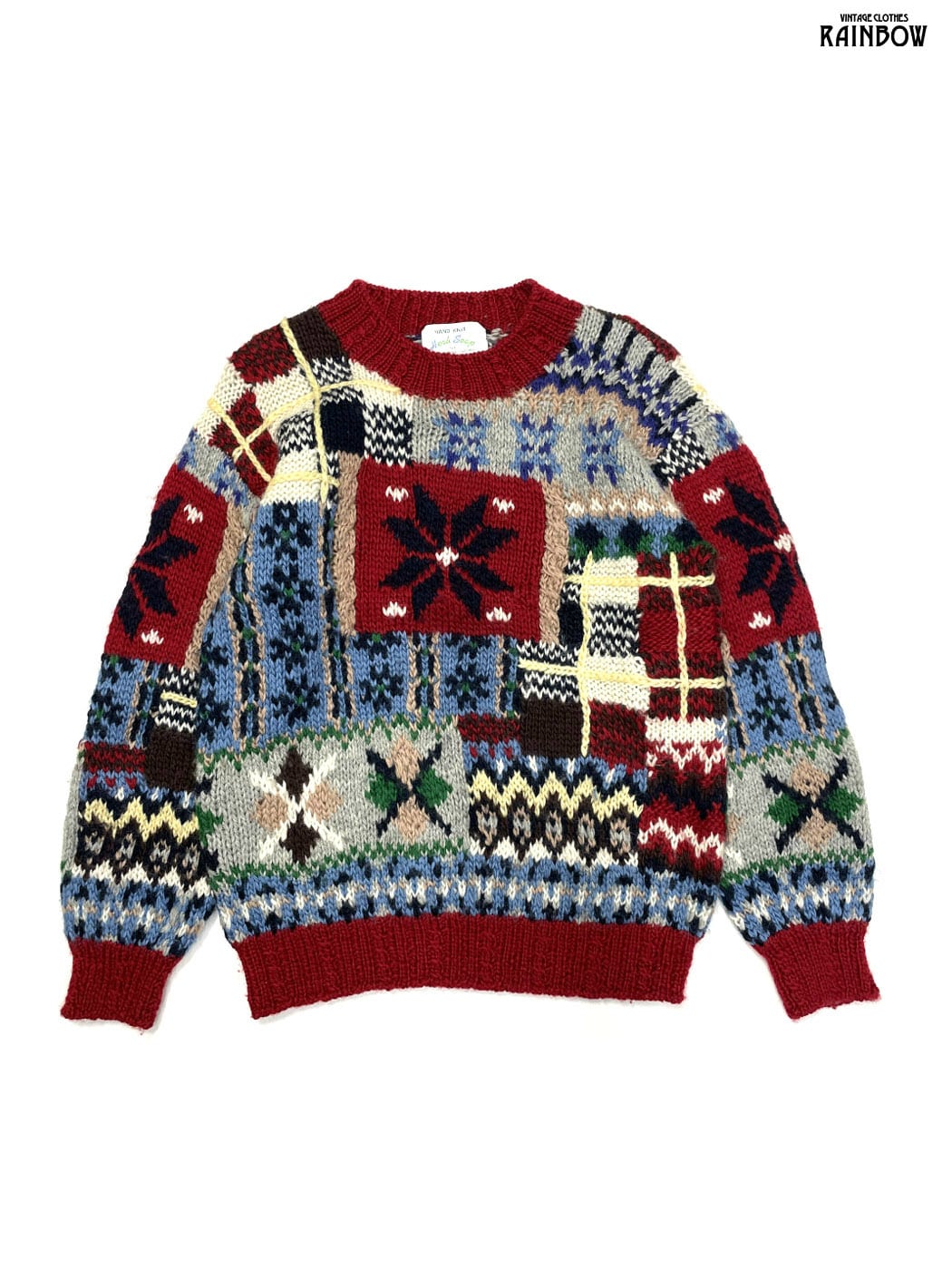 #ニット #セーター #ロングスリーブ #赤 #総柄 #ノルディック柄 #ニット地 #ノルディック柄ニット