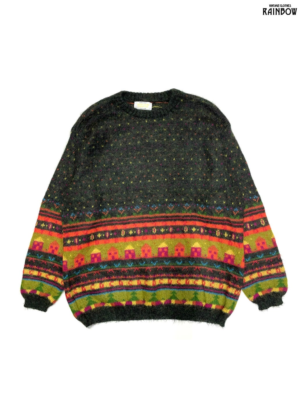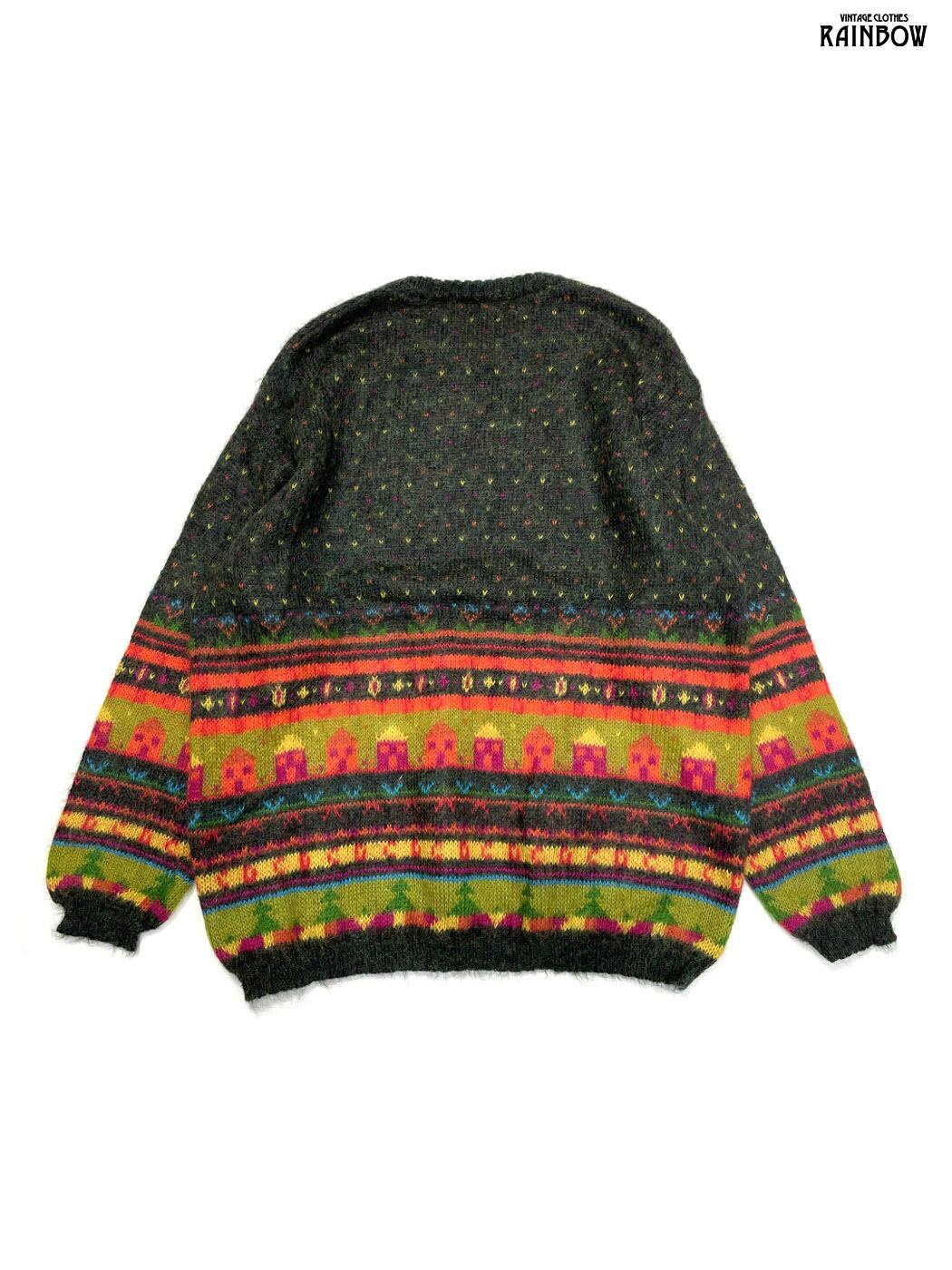 #ニット #セーター #ロングスリーブ #緑 #総柄 #イタリア製 #クラシック #ニット地 #柄セーター