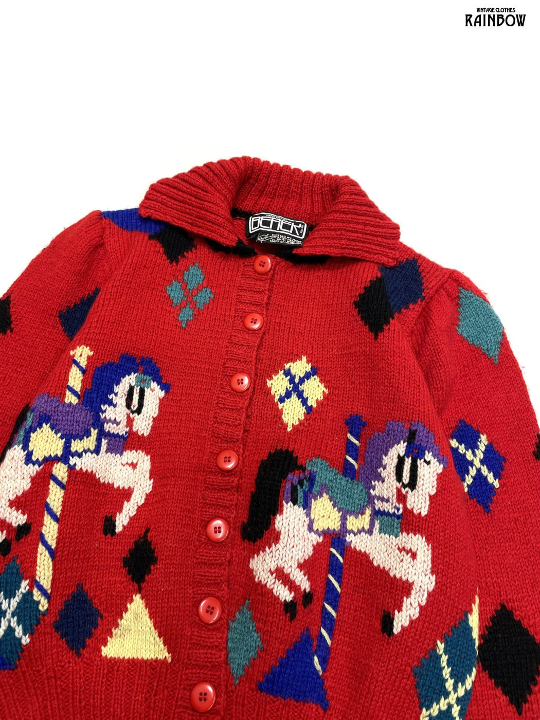 #ニット #カーディガン #ロングスリーブ #赤 #キャラクター #ベティ #ウール #柄カーディガン