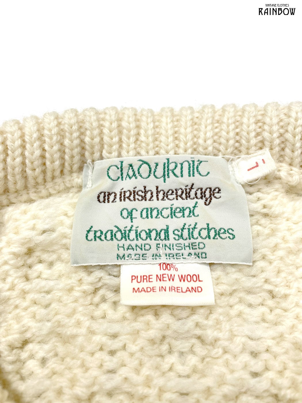 #ニット #セーター #ロングスリーブ #白 #ベージュ #生成り #総柄 #スペード #クローバー #アイルランド製 #ケーブル #ガーリー #ヴィンテージ #ウール #ピュアウール #柄セーター