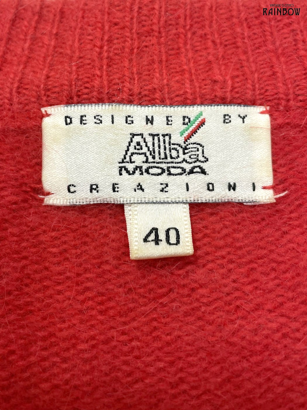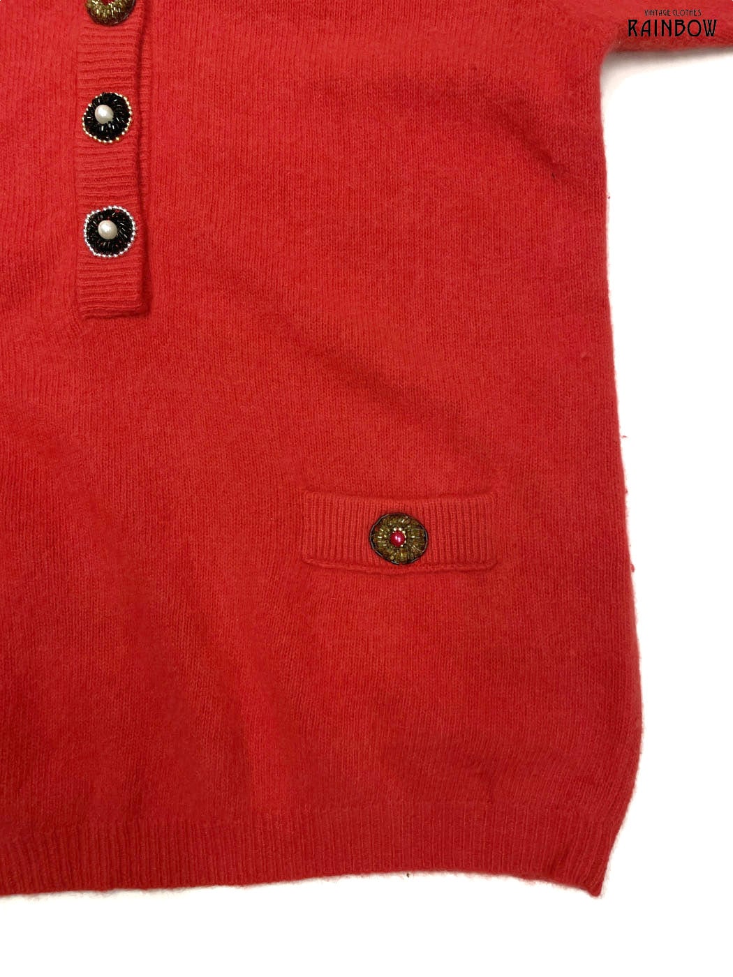 #ニット #セーター #ロングスリーブ #赤 #無地 #刺繍 #ビジュー #ガーリー #ヴィンテージ #ウール #ピュアウール #無地セーター