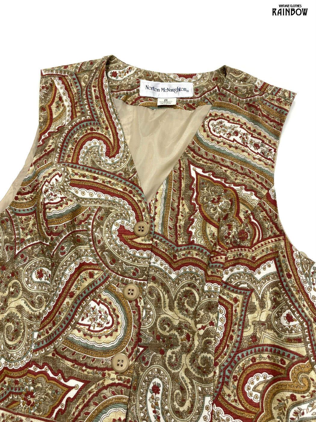 #トップス #ベスト #ノースリーブ #オレンジ #総柄 #アメリカ製 #レーヨン #ベスト